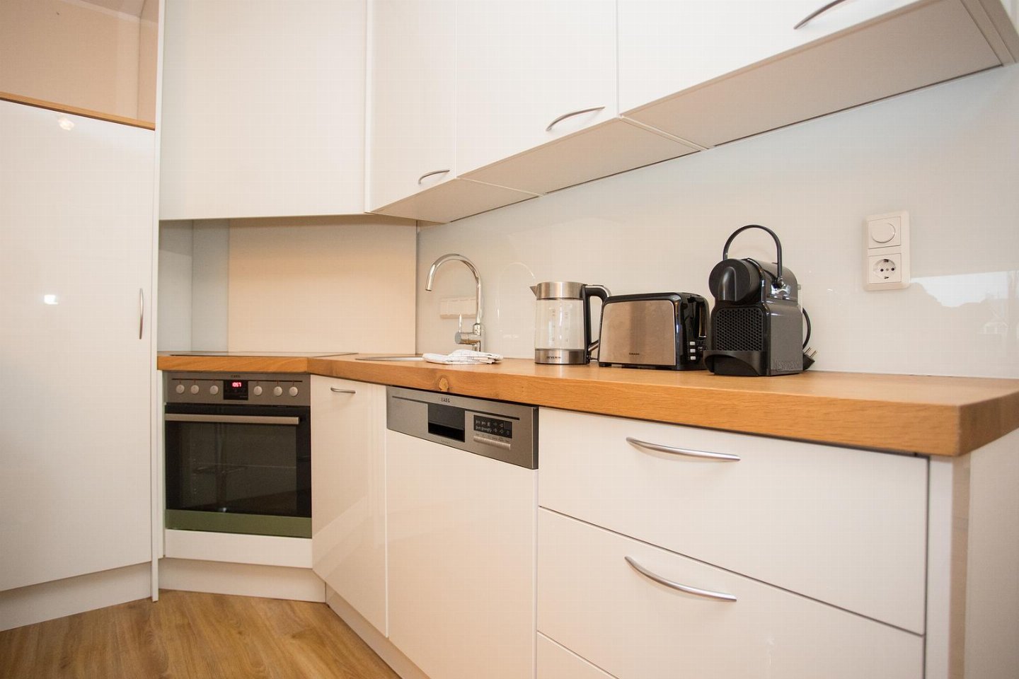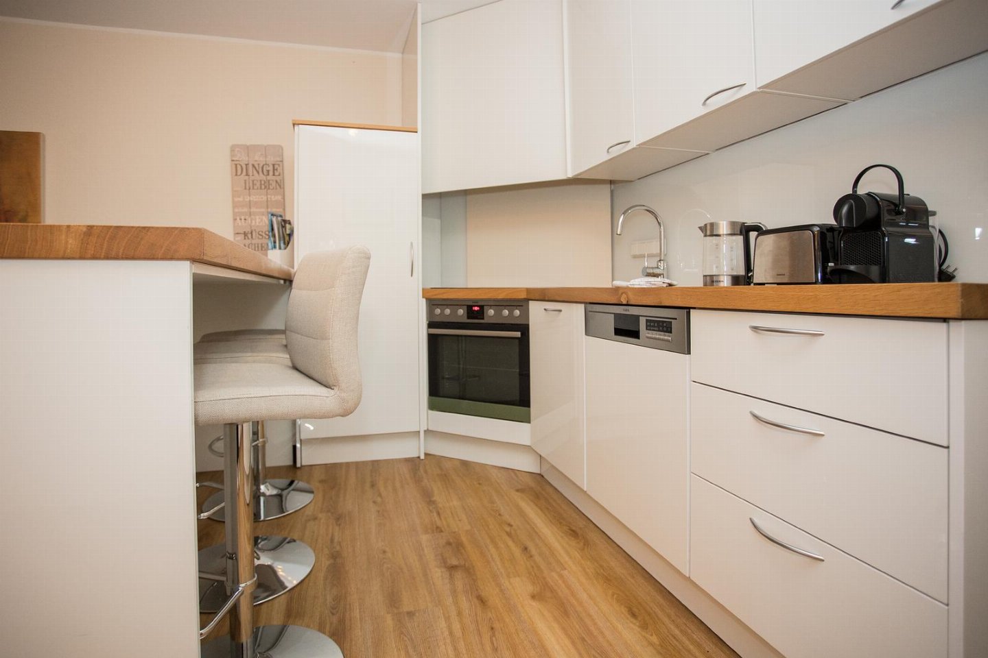 Nespresso koffiezetapparaat. Via de gang kom je bij de moderne