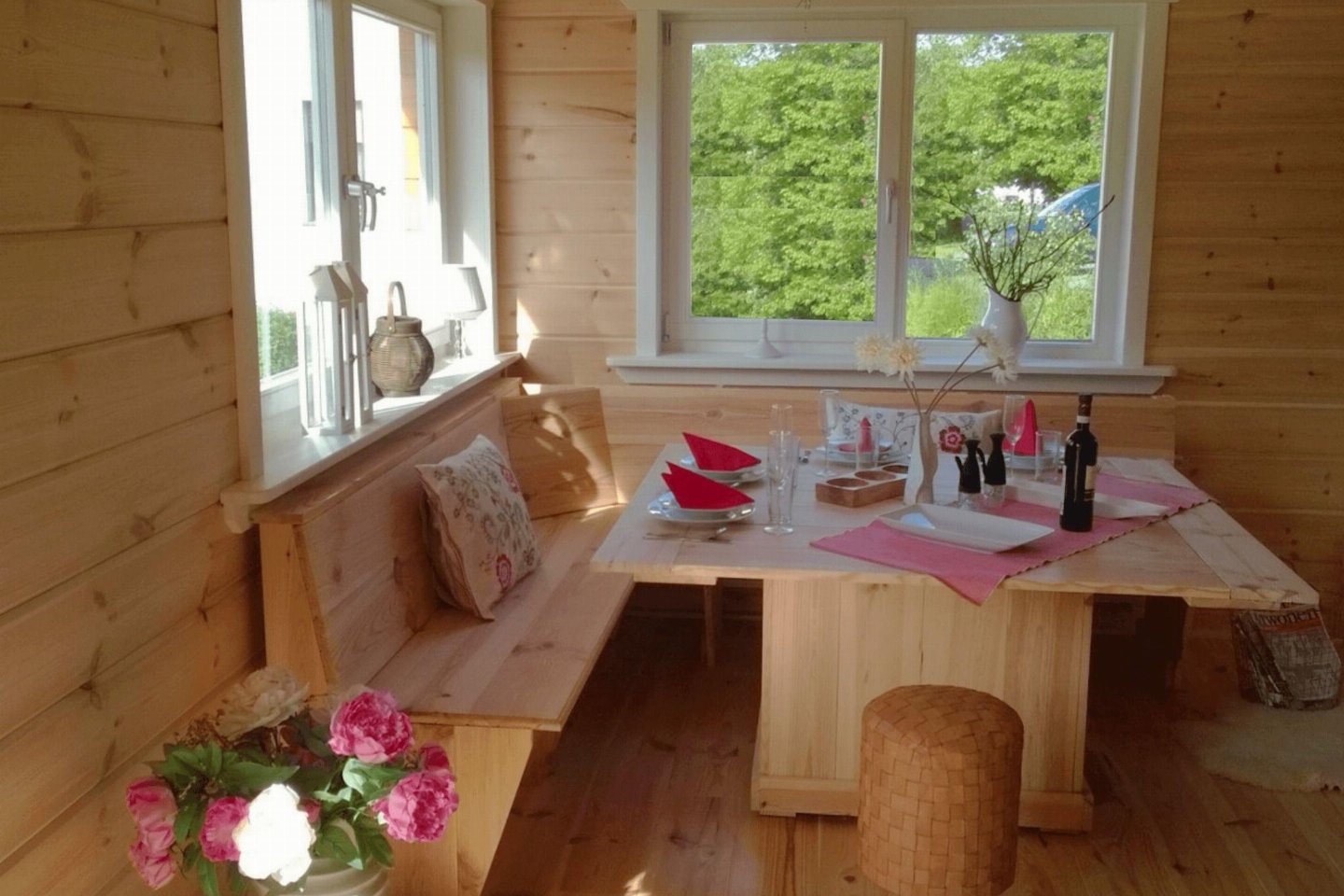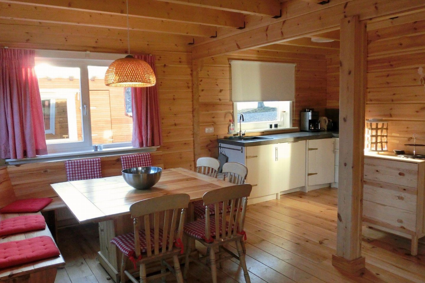 Begane grond: (woonkamer(2-pers. slaapbank, TV, eettafel, DVD-speler), open keuken(fornuis, koffiezetapparaat(filtermaling), oven, afwasmachine, koel-/vriescombinatie), slaapkamer(2-pers. bed), toilet(wastafel, wc))