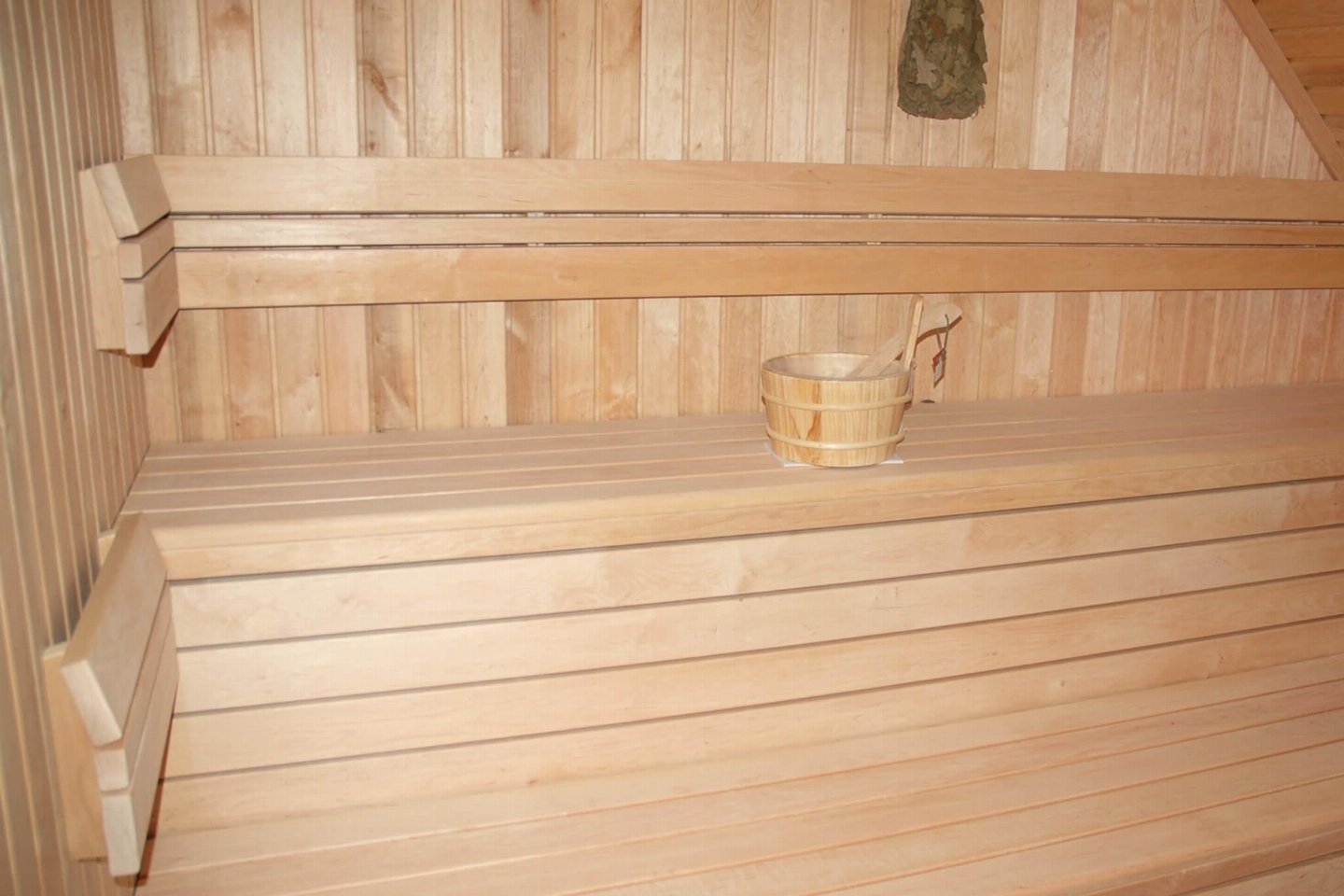 Op de 1e etage: (2x slaapkamer(2-pers. bed), badkamer(ligbad, douche, wastafel, wc), saunaruimte(sauna(privé)))