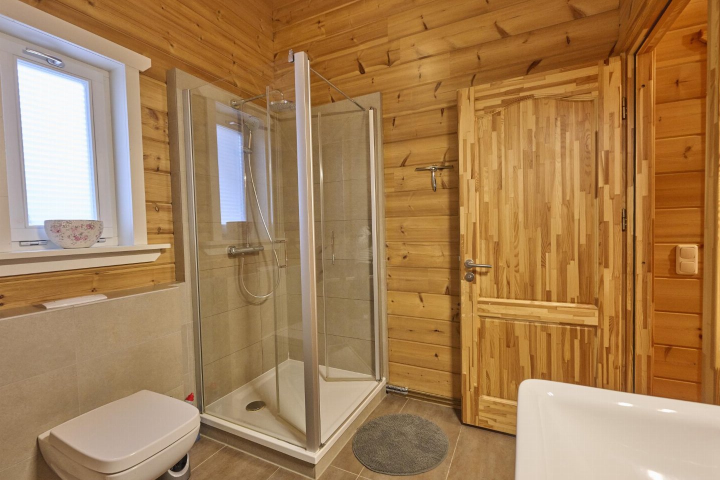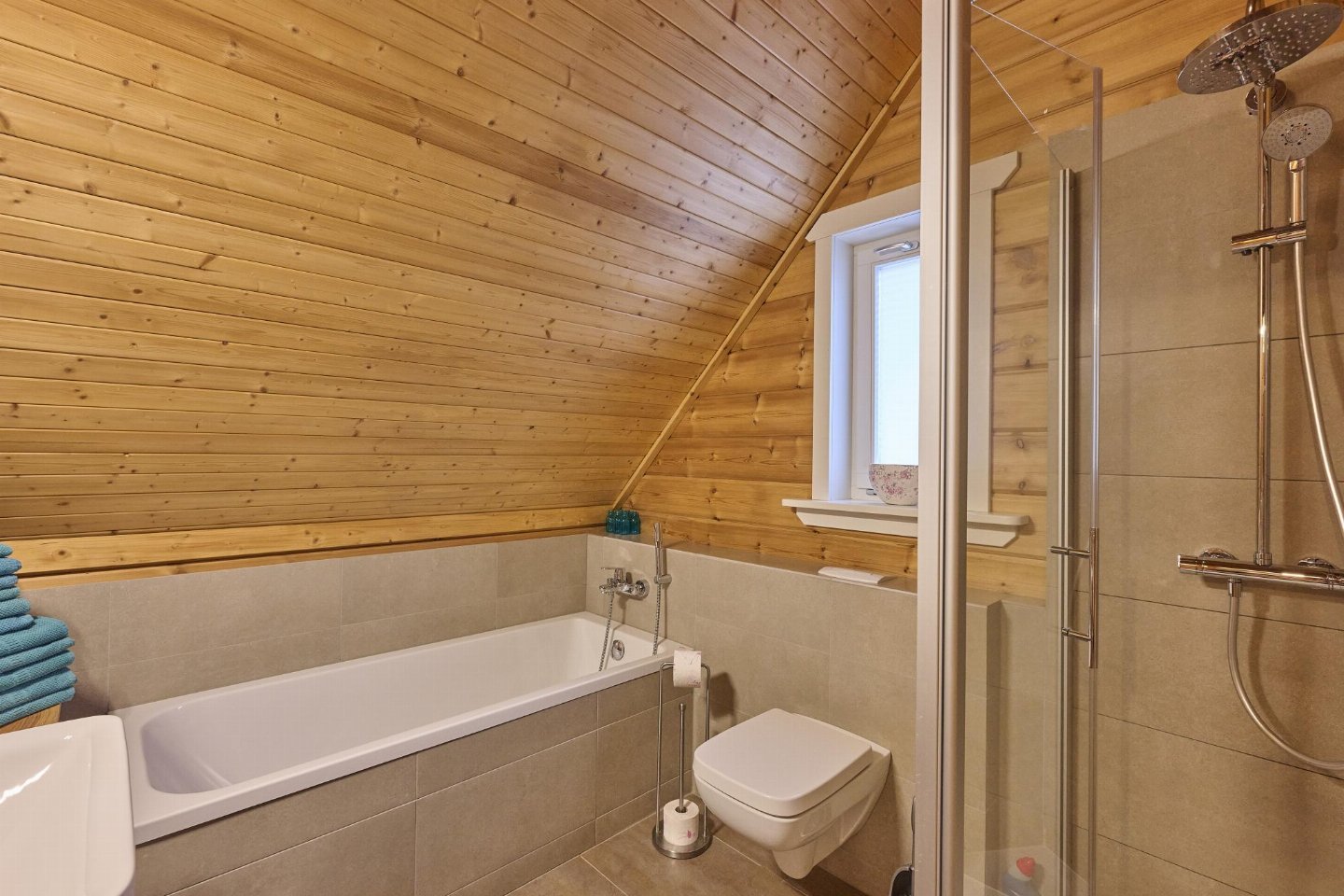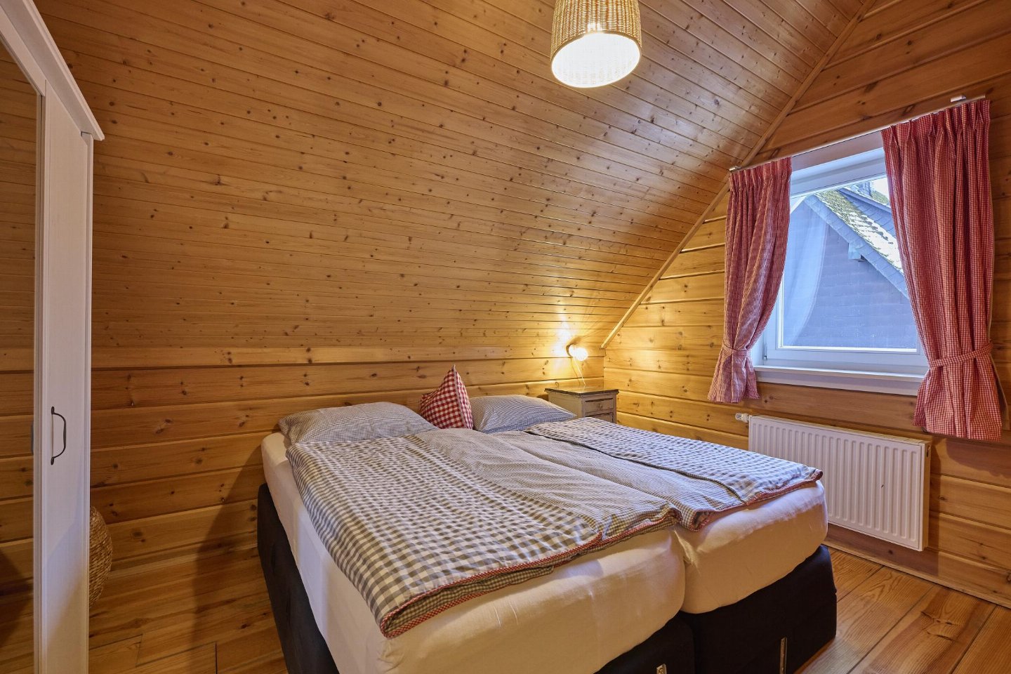 Op de 1e etage: (2x slaapkamer(2-pers. bed(boxspring)), badkamer(ligbad, douche, wastafel, wc), saunaruimte(sauna(privé)))