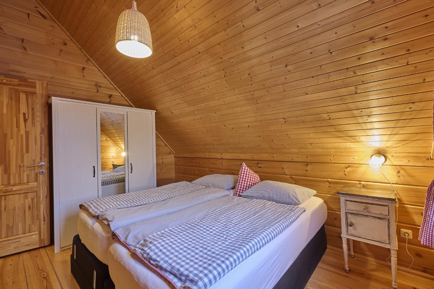 Begane grond: (woonkamer(2-pers. slaapbank, TV, eettafel, DVD-speler), open keuken(fornuis, koffiezetapparaat(filtermaling), oven, afwasmachine, koel-/vriescombinatie), slaapkamer(2-pers. bed), toilet(wastafel, wc))