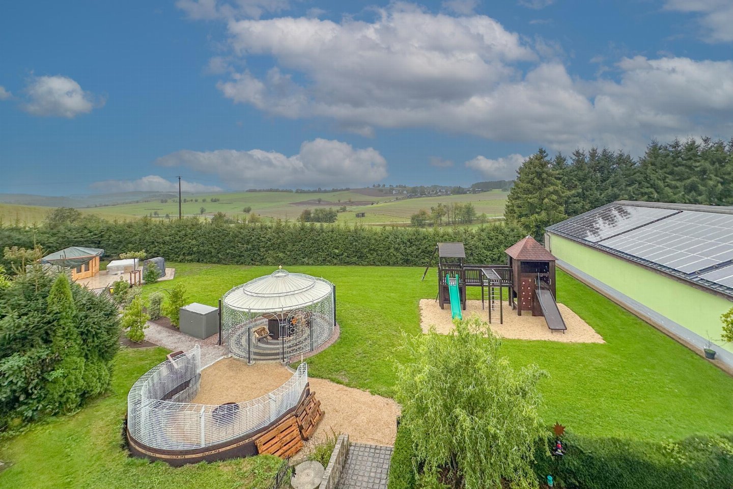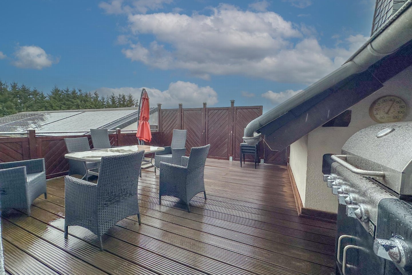 Dit huis kenmerkt zich door rust en ruimte. Het is de perfecte keuze als je met een vrienden of familie groep lekker tijd wil doorbrengen. Door de ligging, boven op een heuvel in een natuurrijk gebied in het gehuchtje Feuerscheid, geniet van prachtige vergezichten. De woonkamer biedt genoeg ruimte voor gezellig samen zijn. Het dakterras is de plek waar je lekker kan BBQ-en en van het uitzicht geniet. De ruime tuin met speeltoestellen en spa-bad (tegen betaling) maken het geheel af