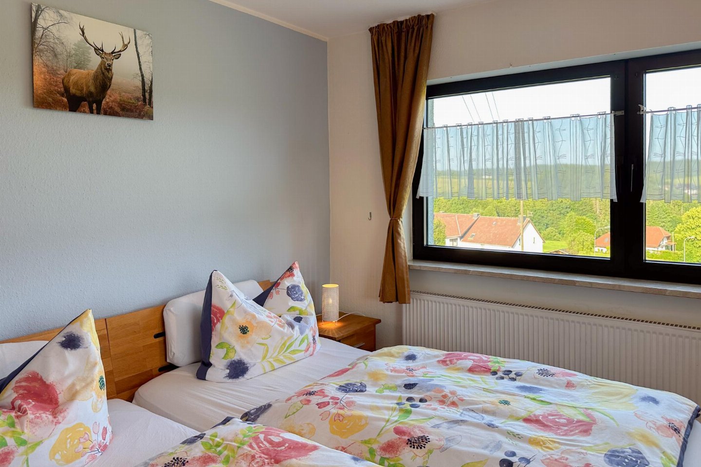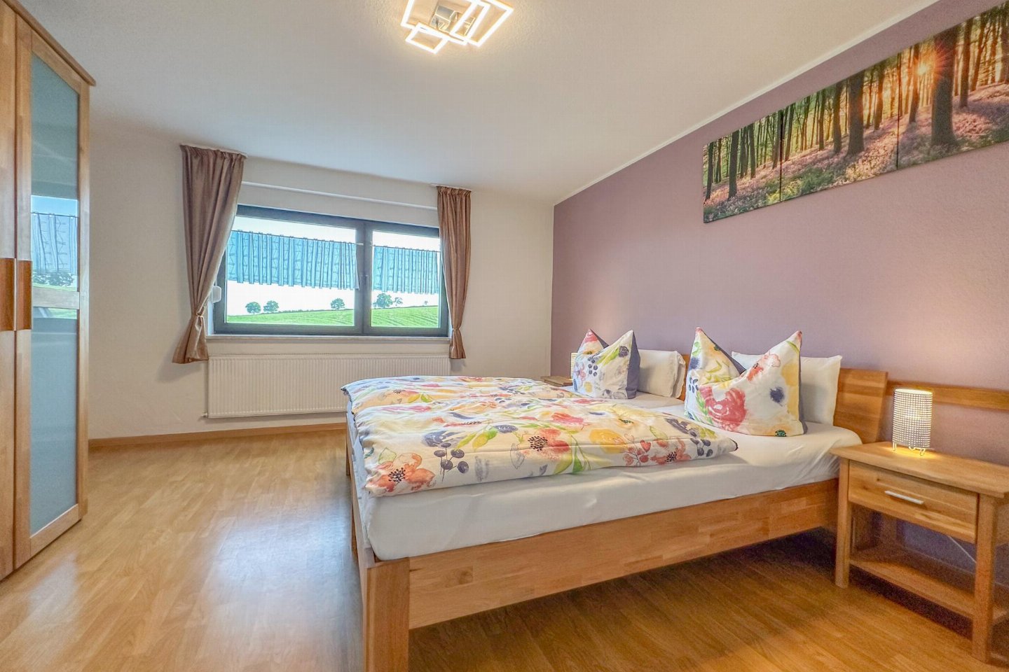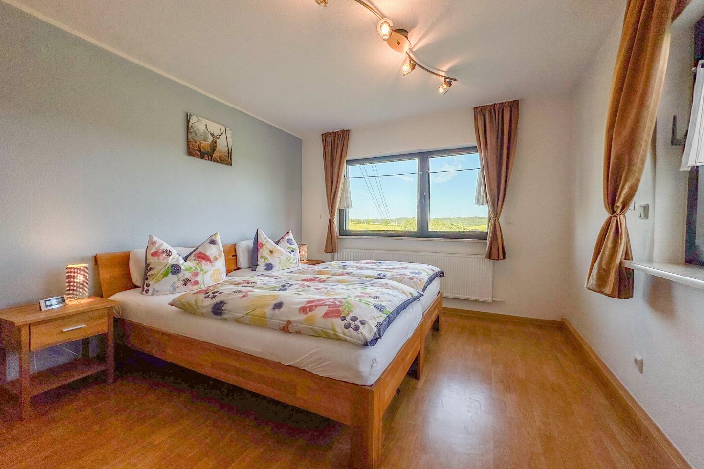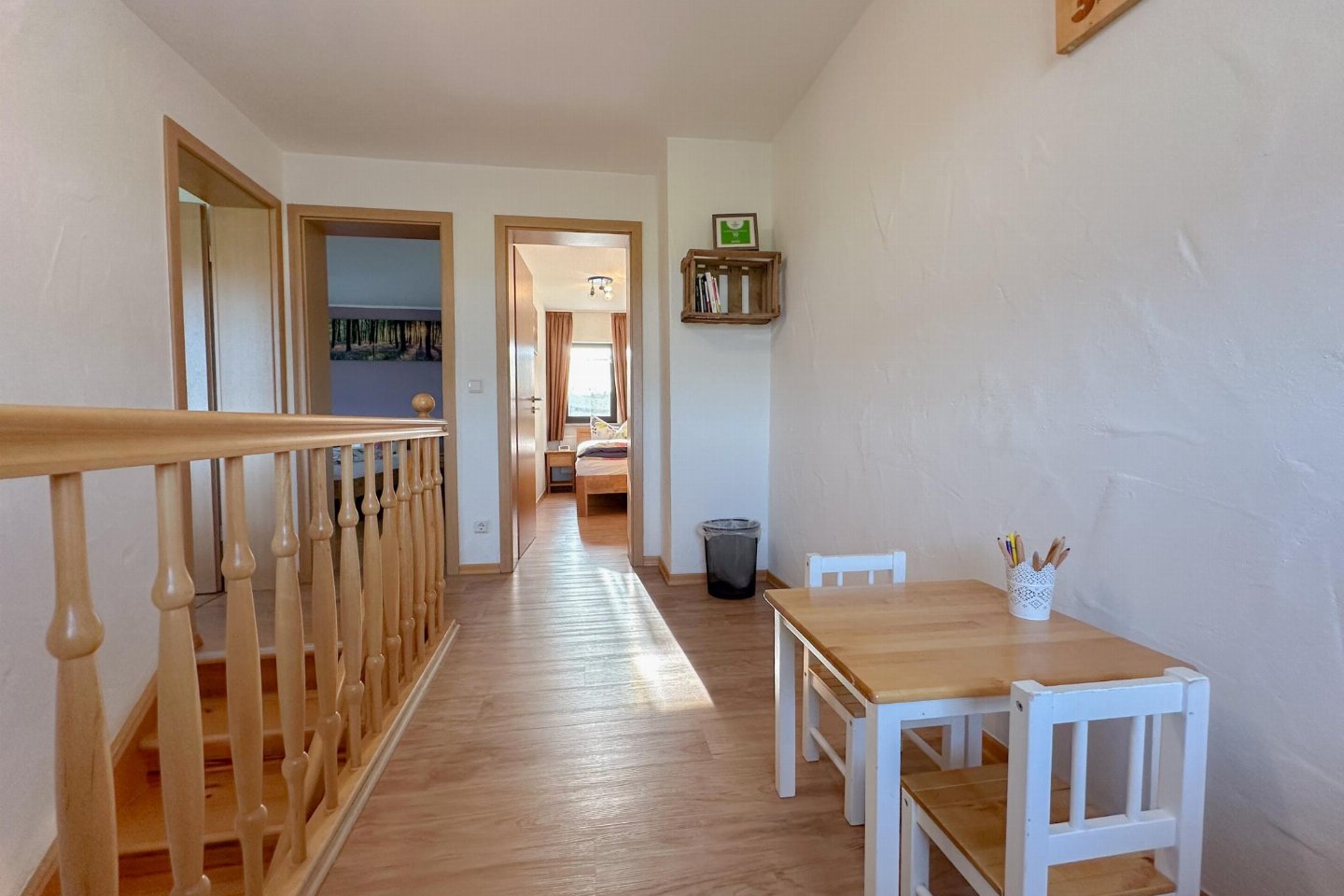 Duitsland, Rheinland-Pfalz, KleinlangenfeldDit is zon gemoedelijke huis waar je met liefde wordt ontvangen. Bedden lekker opgemaakt, leesboeken en spelletjes zijn aanwezig en zelfs een bakje voor de hond. Het huis ligt boven op een heuvel dus je geniet een waanzinnig uitzicht. Op de eerste verdieping vind je naast 3 slaapkamer en kinderhoekje.
