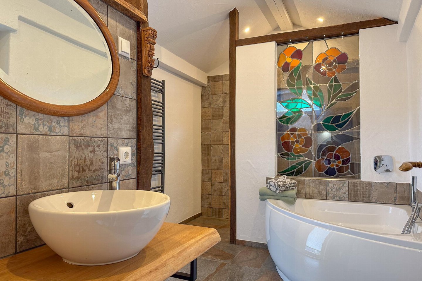 In deze sfeervolle woning met veel mooie en unieke details zul je, je direct thuis voelen. Met ligbad, inloopdouche, complete keuken en ruime woonkamer met TV en sfeerhaard is er aan luxe geen gebrek. Het appartement ligt in een oude hoeve welke je alleen bewoont. En met de auto ben je ook zo in Koblenz.
