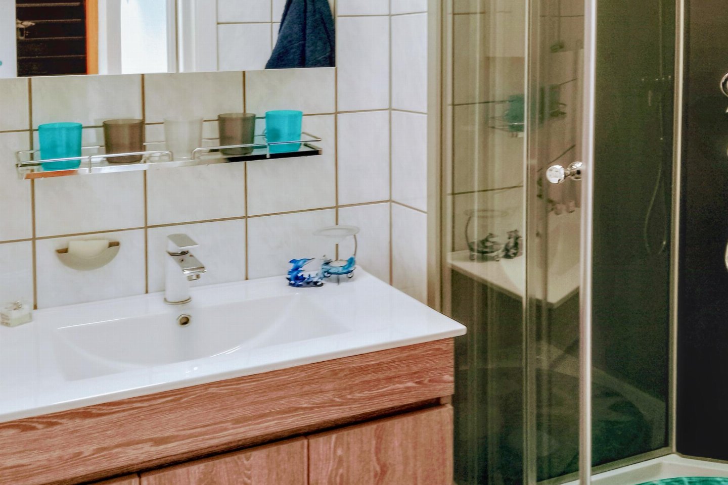 Op de 1e etage(via steile trap): keuken met eettafel, waterkoker, broodrooster, fornuis(keramisch, elektrisch), koffiezetapparaat(filtermaling), oven, magnetron , slaapkamer met 2-pers. bed(200 x 200 cm) , slaapkamer met 1-pers. bed(90 x 180 cm), stapelbed, TV(satelliet) , badkamer met wasbak, douche, wc, haardroger