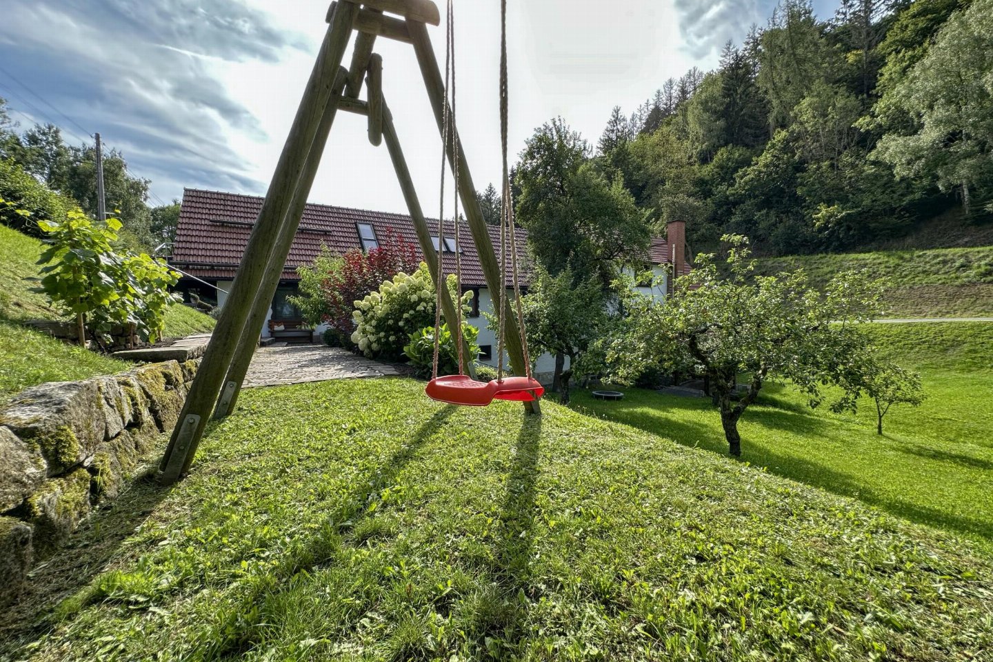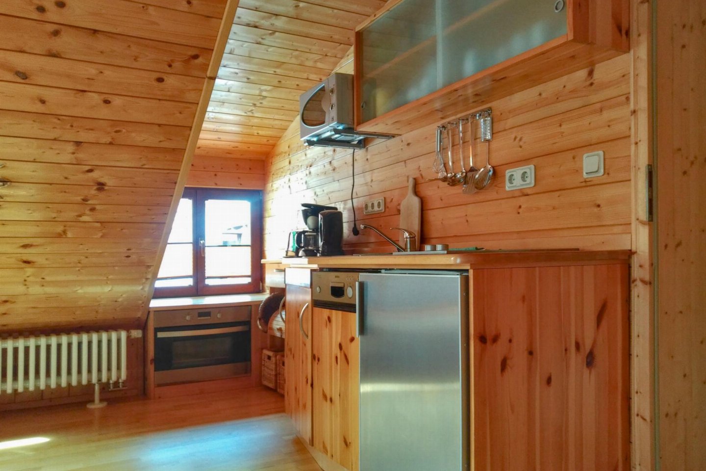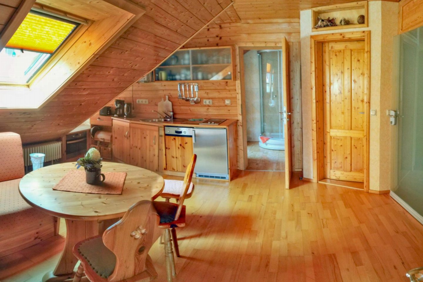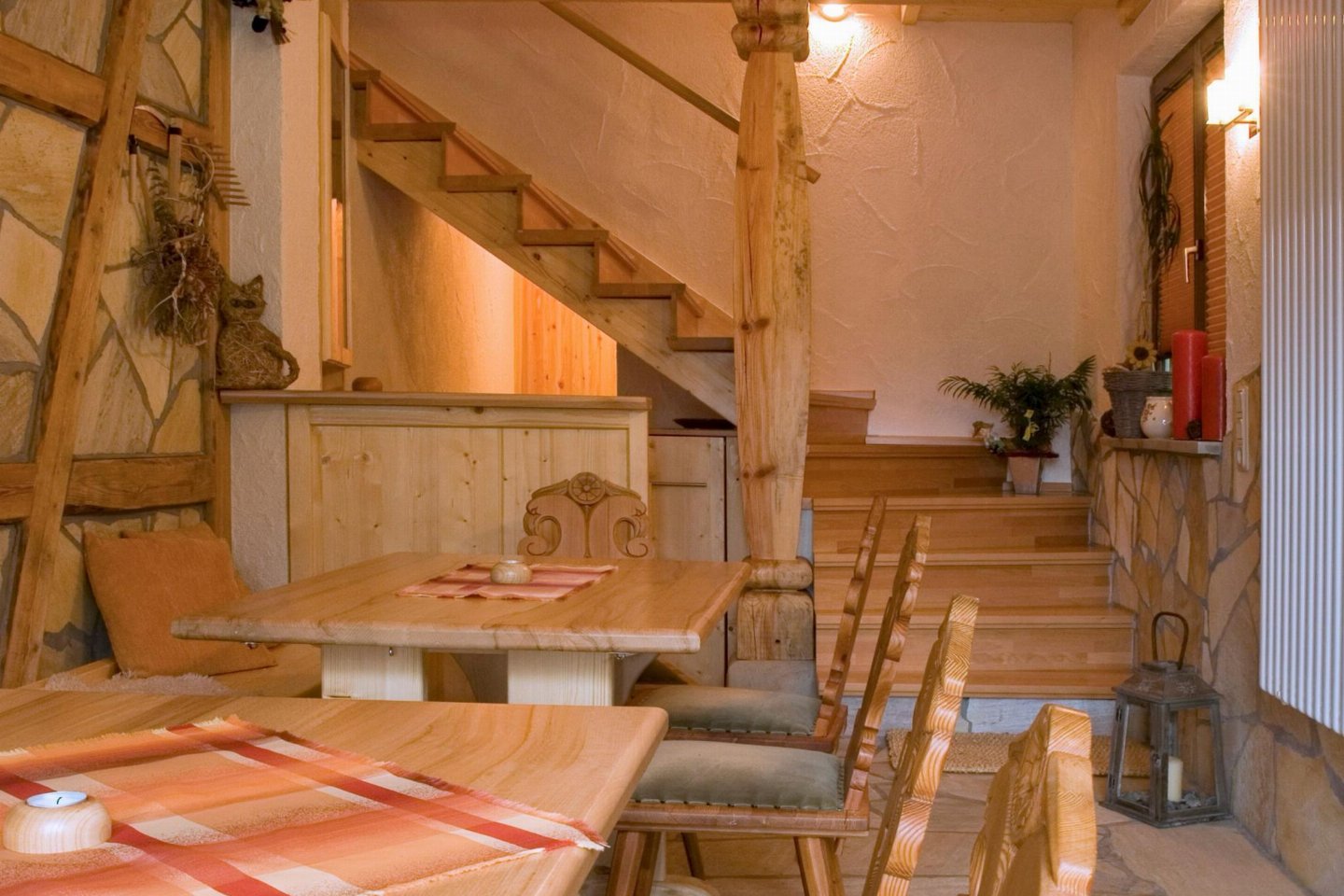 Duitsland, Thüringen, Schleusegrund OT LangenbachDit vakantiehuis maakt deel uit van een traditionele boerderij in Langenbach, rustig gelegen op de zonnige zuidhellingen van het Thüringer Woud. Het interieur met veel hout straalt warmte en gezelligheid uit. Er is een eigen terras, een balkon en een speel- en ligweide. bed(160 x 200 cm) , slaapkamer met 2-pers.