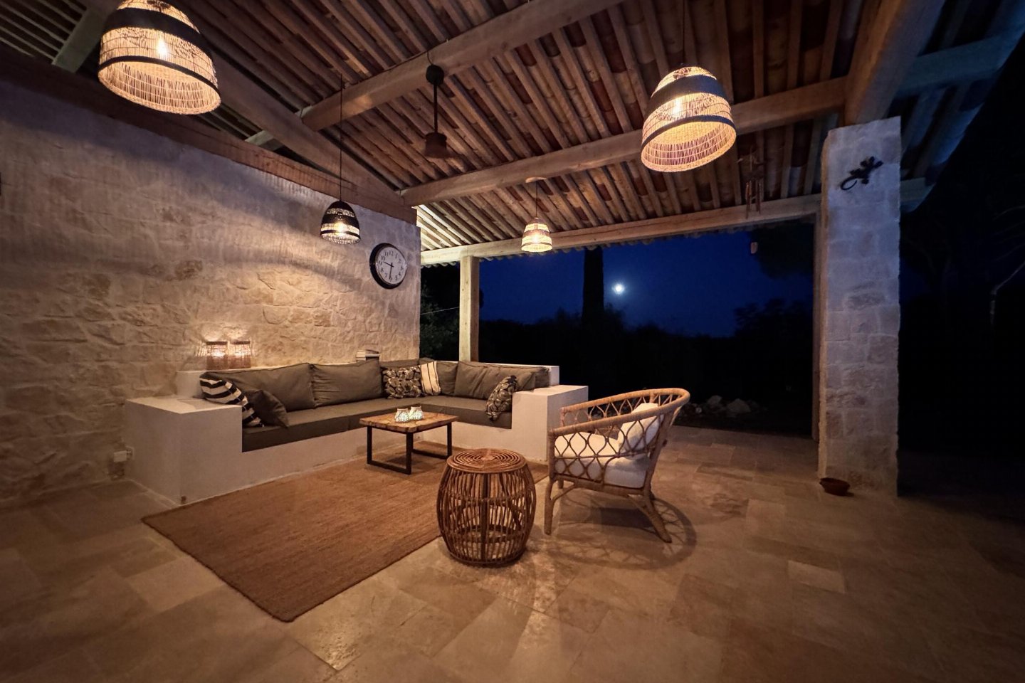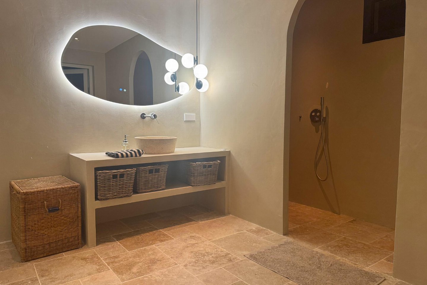 Poolhouse: badkamer met douche(buiten, inloopdouche, Regen), wastafel , eettafel, zithoek, bar, koelkast, BBQ(gas)