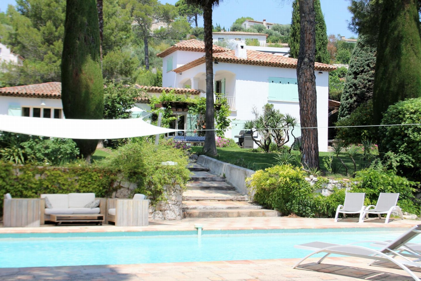 In een groene oase, op slechts 3 km van het charmante Middeleeuwse Mougins en 8 km van de Middellandse Zee met haar prachtige stranden, ligt deze luxe villa met een omheinde tuin van 4000 m². Ontspan bij het luxe poolhouse met bar en loungehoek, of neem een duik in je eigen verwarmde zwembad.