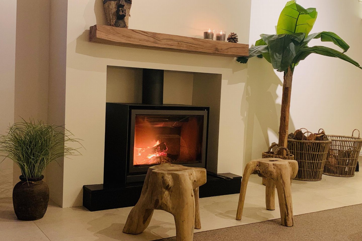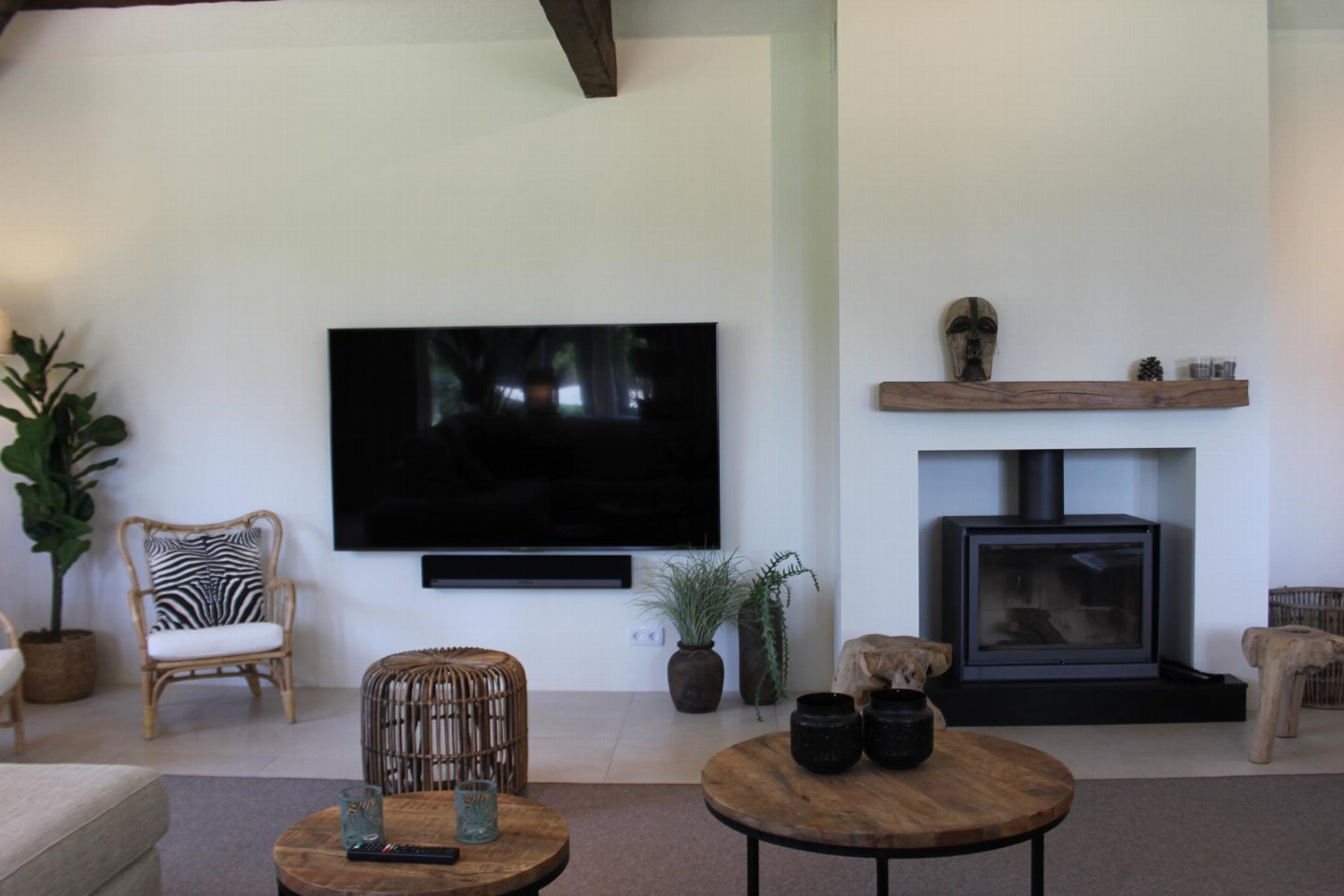 Begane grond: hal met wc , open keuken met waterkoker, broodrooster, fornuis, afzuigkap, koffiezetapparaat(nespresso cups), oven, magnetron, afwasmachine, koel-/vriescombinatie, citruspers, Staafmixer, Keukenmachine , woon/eetkamer met TV(flatscreen, smart TV), eettafel, kachel(hout), zithoek, draadloos muzieksysteem , slaapkamer met 2-pers. bed(160 x 200 cm), airconditioning , slaapkamer met 2x 1-pers. bed(90 x 200 cm), airconditioning , badkamer met douche, wastafel , bijkeuken met vriezer, wasdroger, wasmachine, stofzuiger, strijkplank, strijkijzer