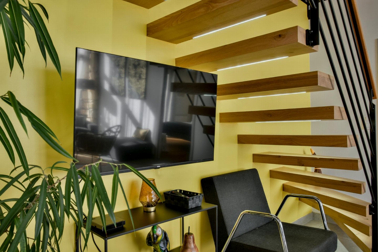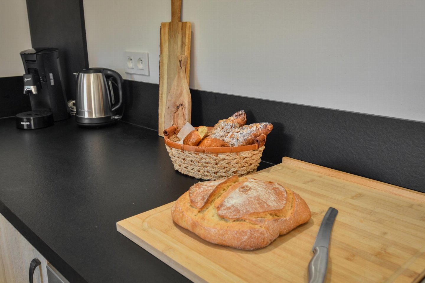 Begane grond: (zitkamer(TV, zithoek), open keuken(waterkoker, broodrooster, fornuis, afzuigkap, koffiezetapparaat(filtermaling), oven, magnetron, afwasmachine, koel-/vriescombinatie), woon/eetkamer(eettafel, zithoek, airconditioning), slaapkamer met badkamer(2-pers. bed(160 x 200 cm), douche, wastafel), toilet, wasruimte(wasdroger, wastafel, wasmachine, strijkplank, strijkijzer))