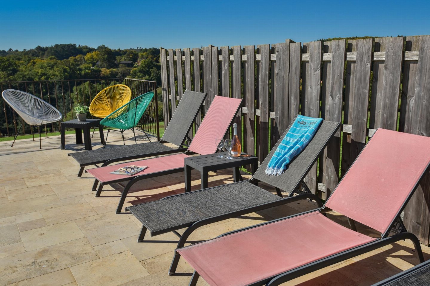 verwarming(vloerverwarming), airconditioning, tuin(omheind), tuinmeubilair, ligbedden, BBQ(houtskool), 1x parking, parasol, jeu de boules baan, 1x kinderbed (excl. beddengoed), lounge set, Oplaadmogelijkheid voor elektrische auto's