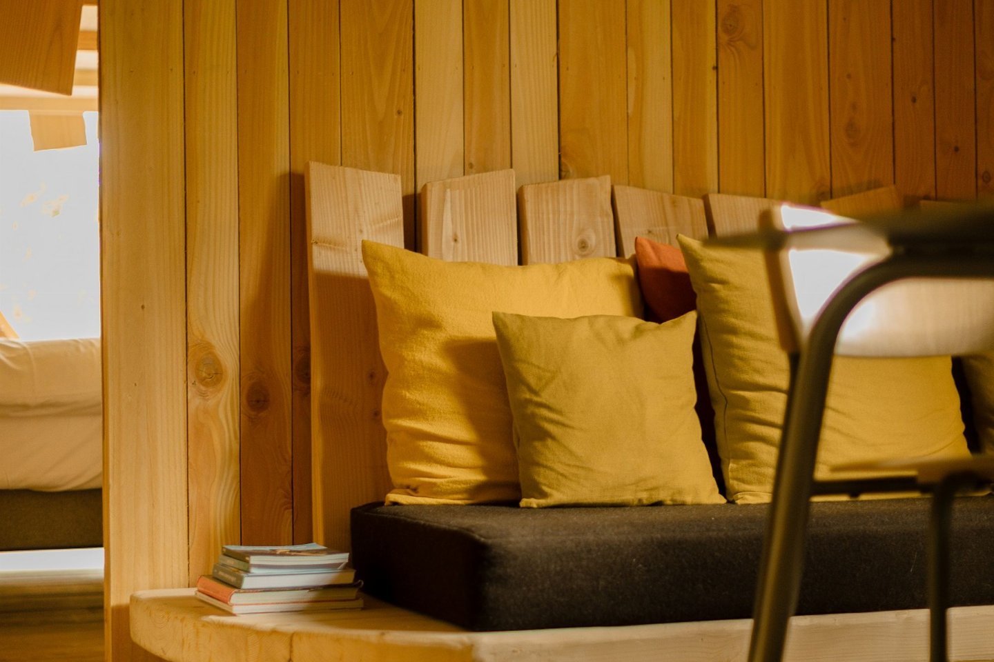 Frankrijk, Hauts-de-France, Saint Léger aux BoisDe hutten van Ecole Buissonniere bevinden zich in het hart van een uitzonderlijke natuurlijke omgeving van 35 hectare, omringd door vijvers en bossen.