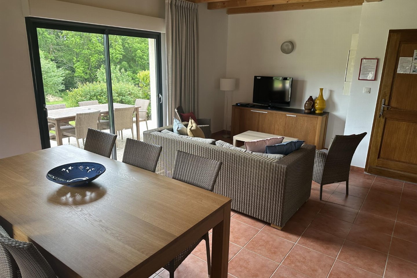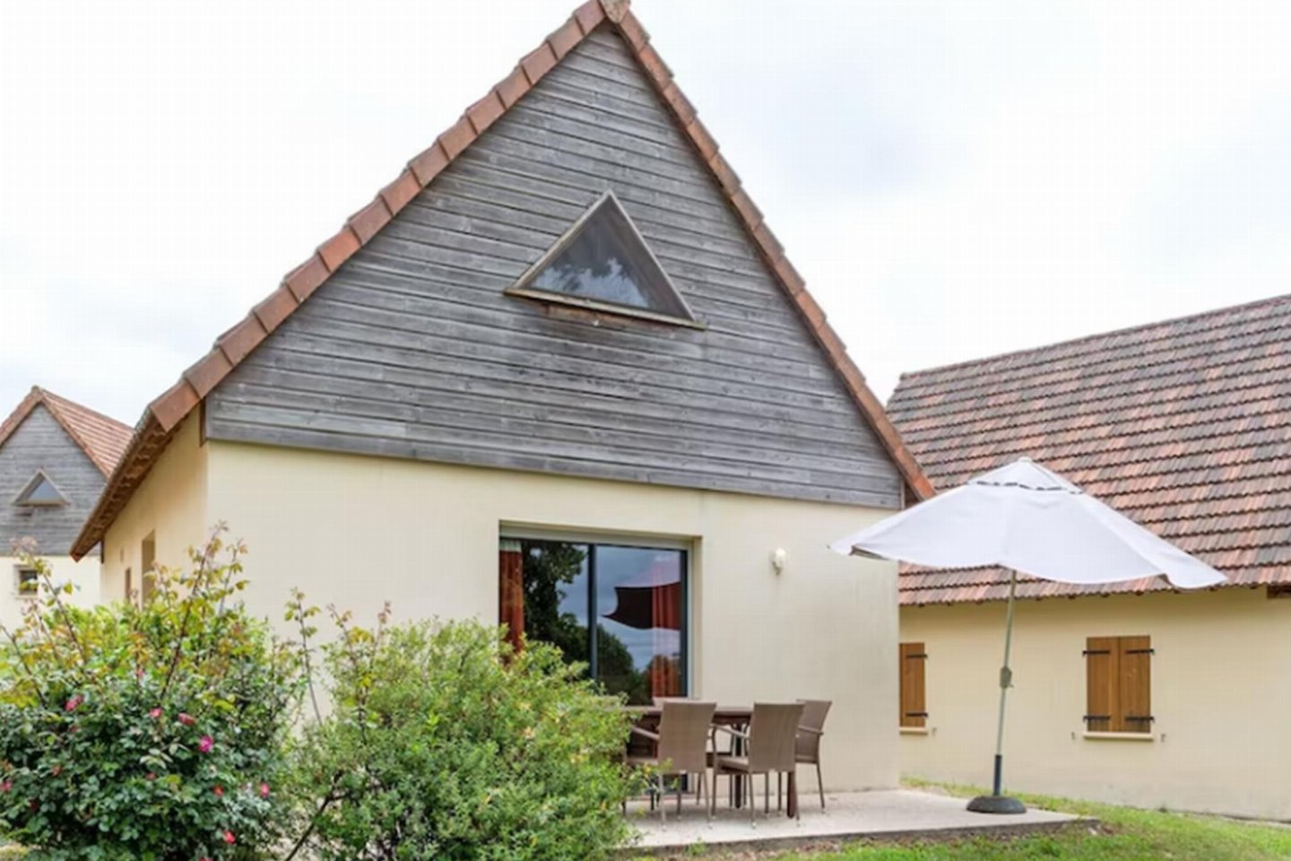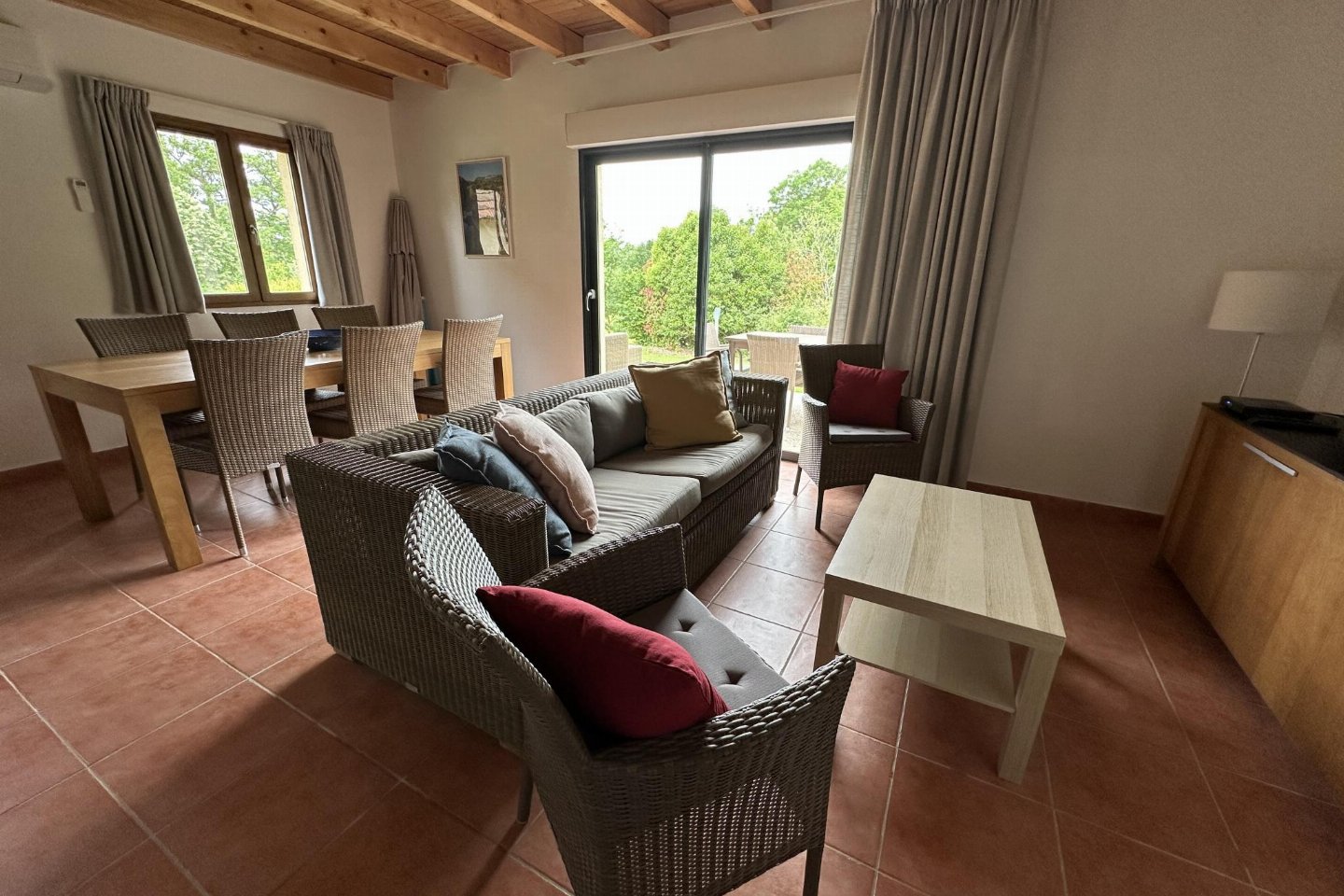 terras met eettafel , tuin(niet omheind), tuinmeubilair, ligbedden, 5x parking, zwembad(gedeeld met andere gasten, buiten, verwarmd, inclusief deel voor peuters (diepte 50cm), omheind, 15 x 7 m., diepte: 1.8m, geopend van Mei t/m Sep), 1x kinderbed (excl. beddengoed), 1x kinderstoel