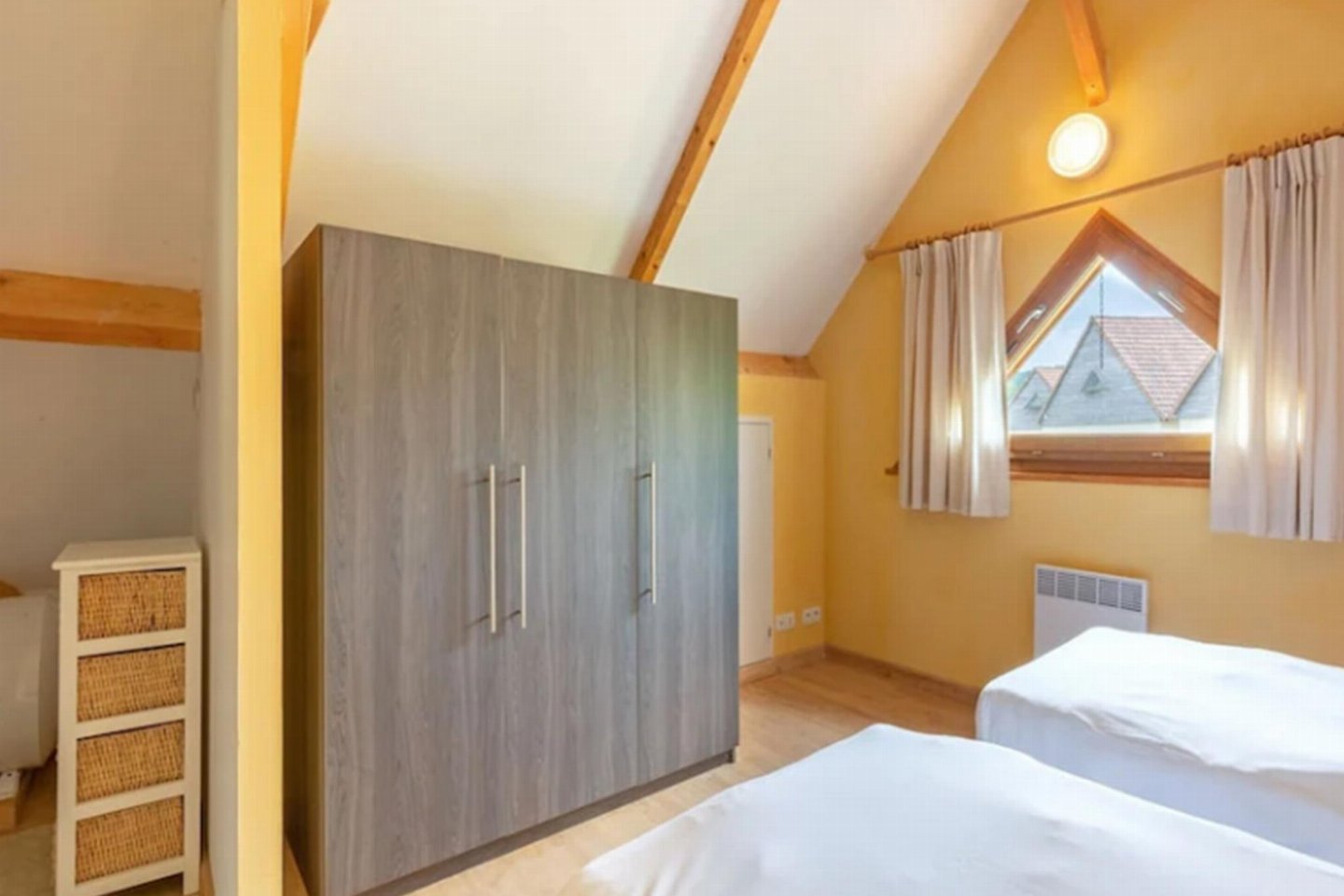 Voel je direct bij binnenkomst welkom in dit heerlijke vakantieoord!. Het beschikt over een verwarmd zwembad en biedt volop mogelijkheden voor alle leeftijden. Sportliefhebbers kunnen hun energie kwijt tijdens een potje tennis, voetbal of basketbal. bed , slaapkamer met badkamer met 2x 1-pers.
