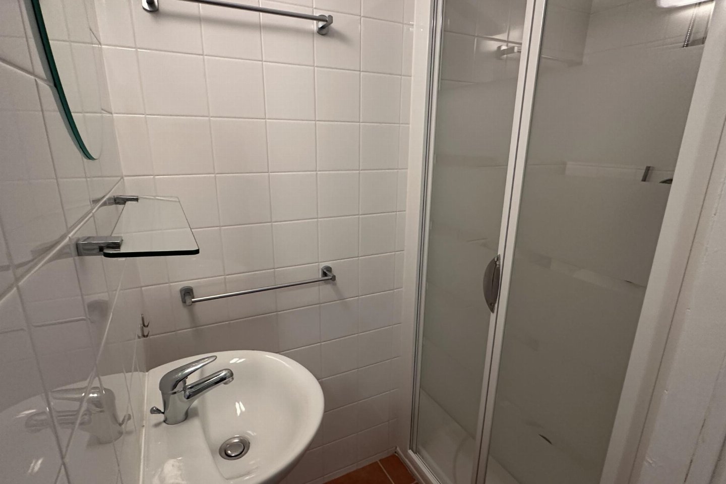 Op de 1e etage: gang, slaapkamer met 2x 1-pers. bed , slaapkamer met badkamer met 2x 1-pers. bed, douche, wastafel, wc , airconditioning