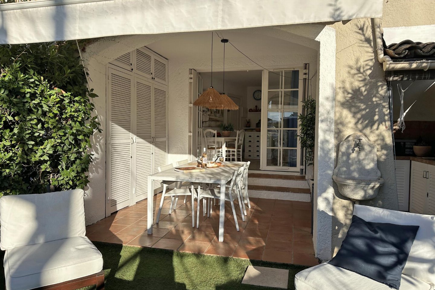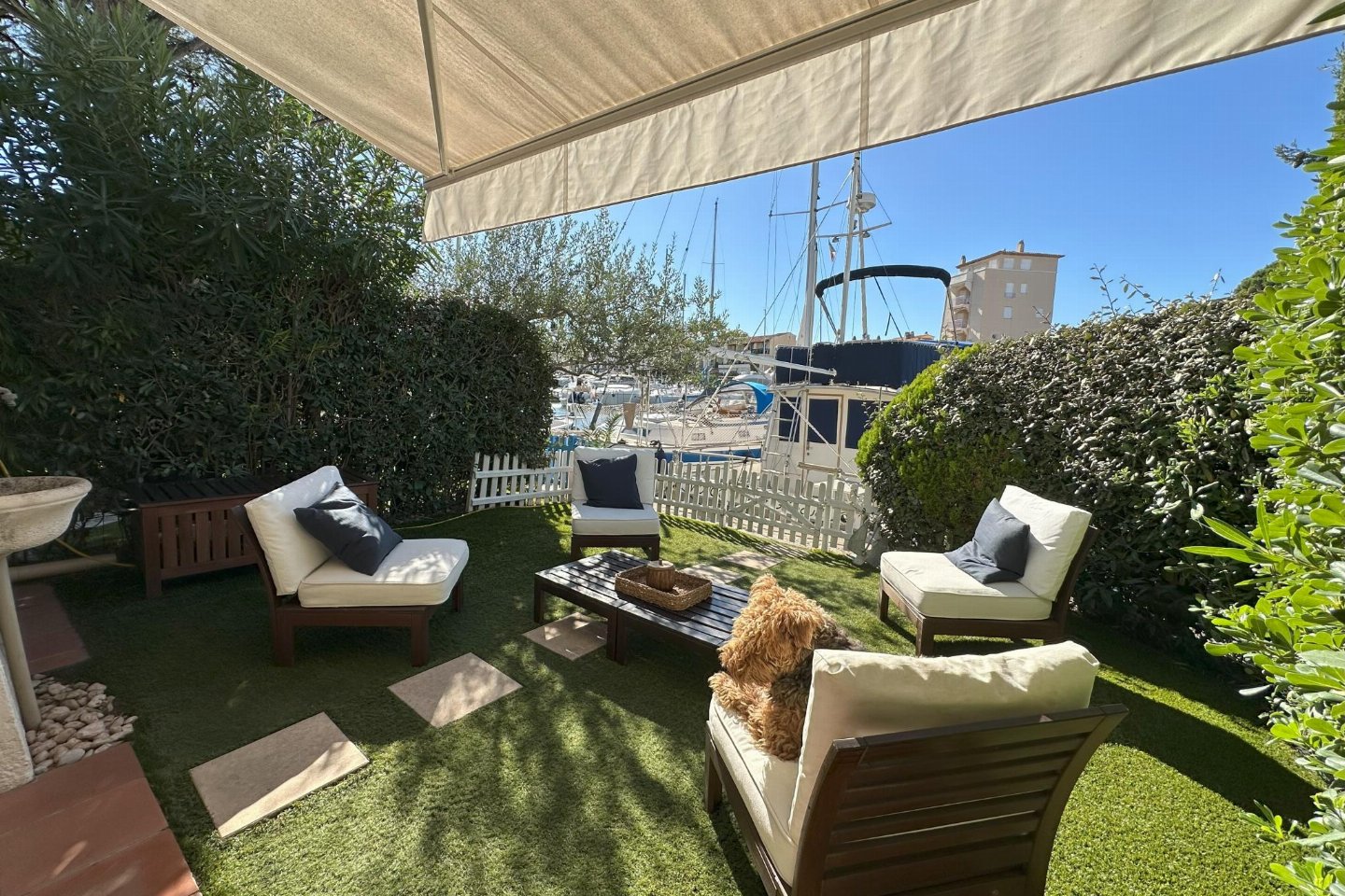 In het betoverende Port Grimaud ligt dit charmante vissershuisje direct aan het water. Omringd door kleurrijke gevels en schilderachtige kanaaltjes ervaar je hier de unieke sfeer van deze bijzondere plek. Geniet op het overdekte terras of in het gezellige tuintje met luxe tuinmeubilair van een prachtig uitzicht over het water en het kasteel van Grimaud, dat 's avonds sprookjesachtig is verlicht. Het huisje bevindt zich in een beveiligde residentie aan de Zuid-Franse kust en biedt rust en comfort