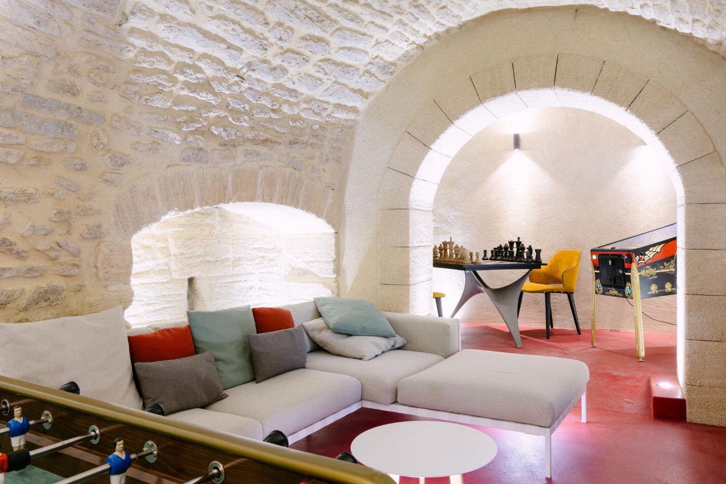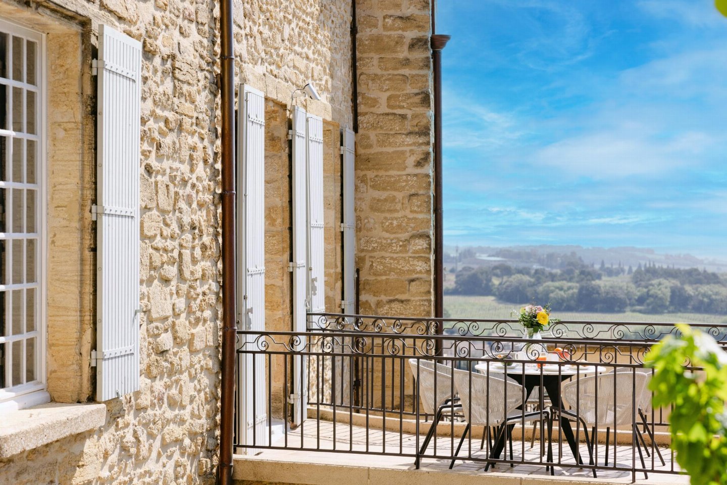 Aan de voet van de ruïnes van het Château, gelegen in het hart van Châteauneuf-du-Pape, ligt een betoverend voormalig klooster vol karakter. Achter de oude poort omarmt je direct rust en historie. Elke kamer heeft airco en in de gewelfde ruimte staat een flipperkast, tafelvoetbal tussen eeuwenoude muren. Buiten wachten sfeervolle terrassen, een privézwembad en uitzicht op het dorp en de Mont Ventoux. Hier vloeien verleden en hedendaagse comfort moeiteloos samen
