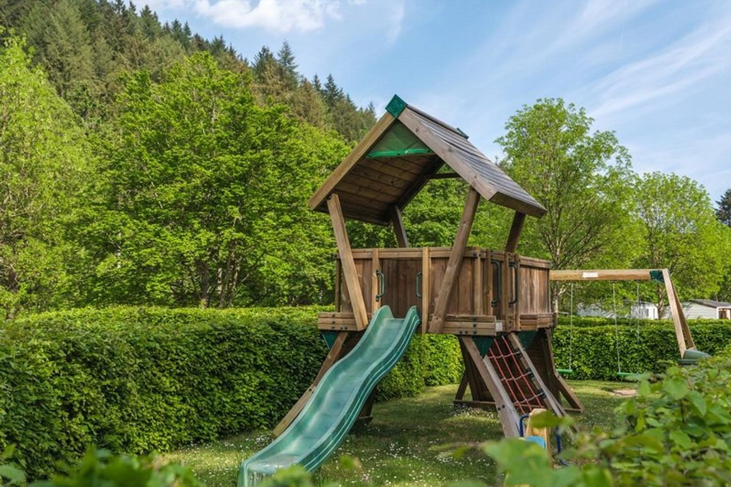 OmschrijvingDe Panorama Lodge is een moderne en stijlvolle recreatiewoning ontworpen voor vier personen. Met twee ruime slaapkamers, beide voorzien van een eigen badkamer en suite, biedt deze lodge het ultieme comfort en privacy. De grote raampartijen en het eigentijdse interieur zorgen voor een lichte en warme sfeer, perfect om tot rust te komen midden in het schilderachtige Luxemburgse landschap. De lodge beschikt over een sfeervolle woonkamer met directe toegang tot het royale terras waar binnen en buiten naadloos in elkaar overlopen. De moderne keuken is volledig uitgerust met hoogwaardige inbouwapparatuur en afgewerkt met oog voor detail zodat koken een waar plezier wordt. BuitenlevenHet ruime terras van de Panorama Lodge biedt een panoramisch uitzicht over de groene heuvels van Luxemburg. Hier kunt u heerlijk ontspannen met een goed glas wijn, samen barbecueën of gewoon genieten van de rust en het gezang van de vogels. De combinatie van comfort en natuur maakt deze plek ideaal voor wie wil onthaasten in een unieke omgeving.Resort WalsdorfDe lodge bevindt zich op Resort Walsdorf, een kleinschalig vakantiepark in het hart van Luxemburg, vlak bij het pittoreske Vianden. Het resort biedt uitstekende faciliteiten, waaronder een minimarkt en een sfeervol restaurant waar u kunt genieten van heerlijke streekgerechten. De combinatie van luxe, rust en natuur maakt Resort Walsdorf de perfecte bestemming voor wie even helemaal wil ontsnappen aan de dagelijkse drukte.Ontdek de omgevingVanaf Resort Walsdorf ontdekt u gemakkelijk de mooiste plekken van Luxemburg. Breng een bezoek aan Vianden met zijn indrukwekkende middeleeuwse kasteel en charmante straatjes, of ontdek Echternach, de oudste stad van het land, met haar historische abdij en sfeervolle pleinen. Ook Esch-sur-Sûre, gelegen aan de rivier de Sûre, is een aanrader voor liefhebbers van natuur en geschiedenis.Kies voor de 4-persoons Panorama Lodge op Resort Walsdorf en ervaar een vakantie vol rust, luxe en natuurbeleving, een plek waar comfort en charme samenkomen voor een onvergetelijk verblijf.