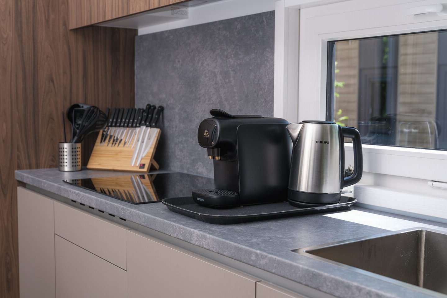 De volledig uitgeruste keuken maakt het eenvoudig om zelf maaltijden te bereiden, van een uitgebreid familiediner tot een snel ontbijt voor een dag vol avontuur. Dankzij de eigen parkeerplaats en de doordachte voorzieningen is deze accommodatie volledig gericht op een zorgeloze vakantie.
