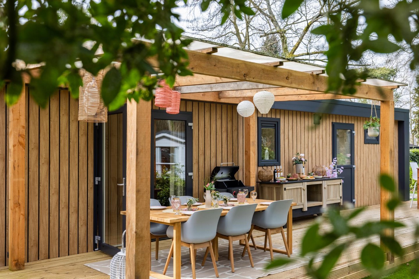 Hertenpad is een sfeervol en luxe verblijf voor 4-6 personen, midden in de natuur. Geniet van het ruime overdekte terras met buitenkeuken, BBQ, lounge en ligstoelen. Vanaf het omheinde terras kijk je zo het bospad in - met wat geluk spot je een hertje. Binnen vind je een gezellige living met open keuken en airco. Twee slaapkamers en een slaapbank. Bedden zijn opgemaakt, handdoeken liggen klaar