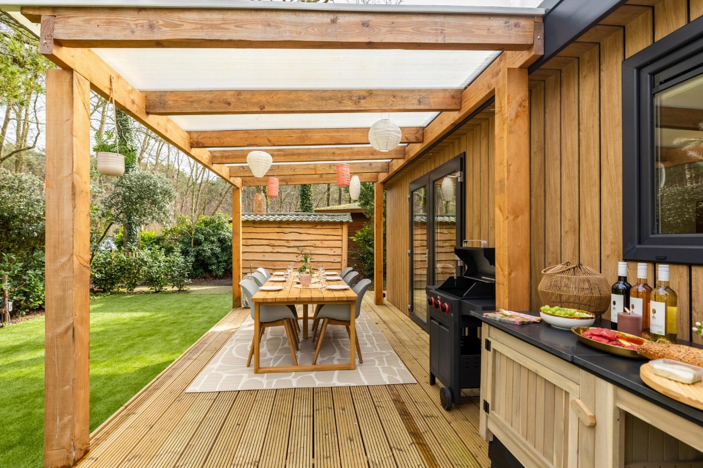 Hertenpad is een sfeervol en luxe verblijf voor 4-6 personen, midden in de natuur. Geniet van het ruime overdekte terras met buitenkeuken, BBQ, lounge en ligstoelen. Vanaf het omheinde terras kijk je zo het bospad in - met wat geluk spot je een hertje. Binnen vind je een gezellige living met open keuken en airco.