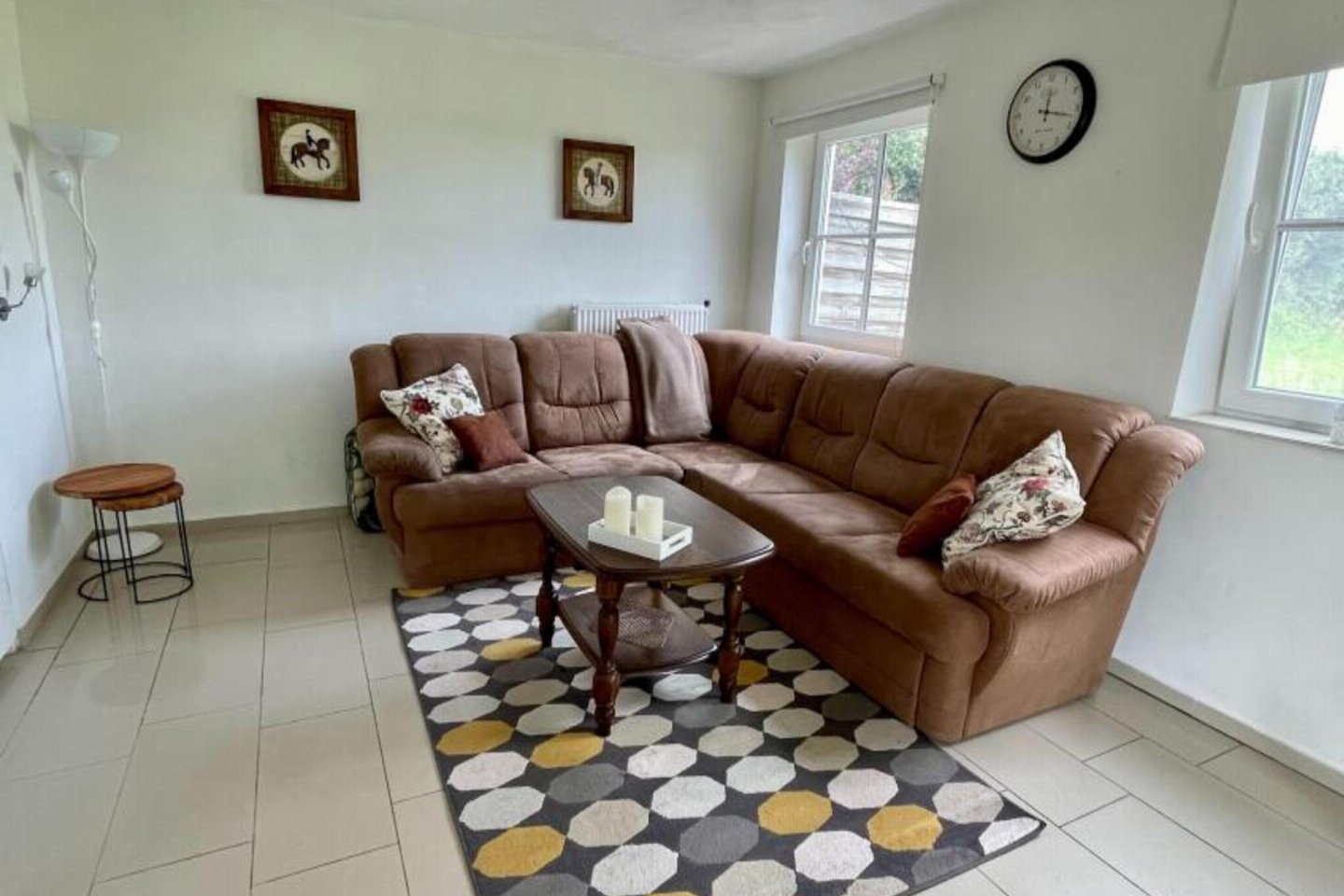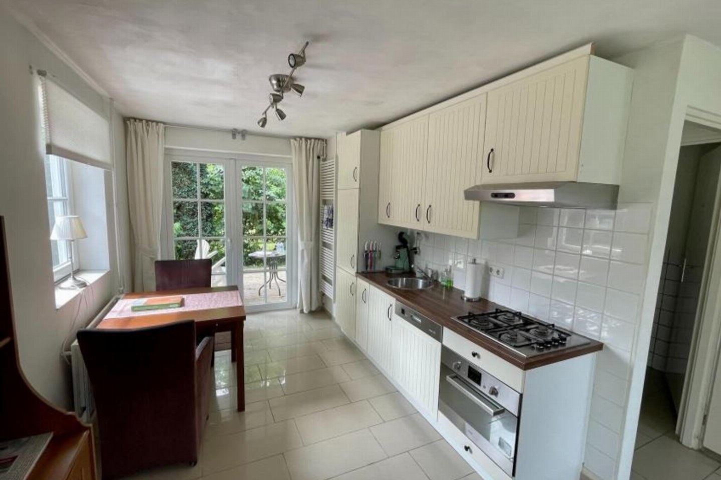 bed(boxspring) , badkamer met douche(cabine), wastafel, wc , berging met wasmachine verwarming(CV), terras(privé), tuin(privé, omheind), tuinmeubilair, BBQ(houtskool), 1x parking, ligstoelen, 1x kinderbed (excl.