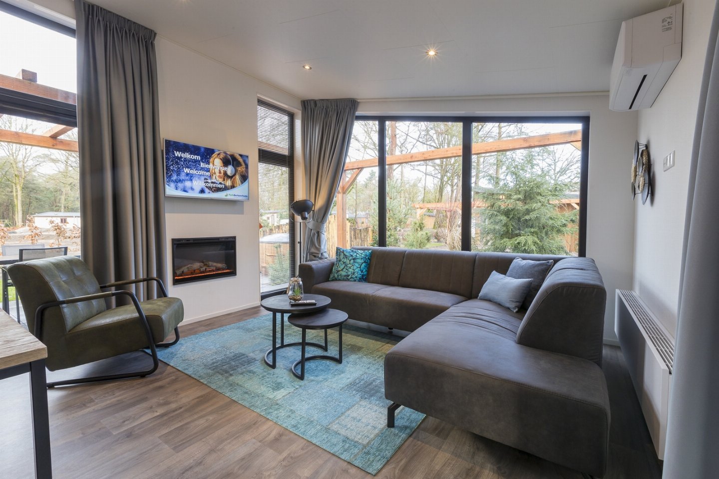 Let op: de tuin indeling, woning inrichting en kleurstelling van de Berken Lodge Eco 5 personen (wellness) die u kiest, kan afwijken van de getoonde afbeeldingen op de website. De mate van Luxe en comfort is natuurlijk gelijk!