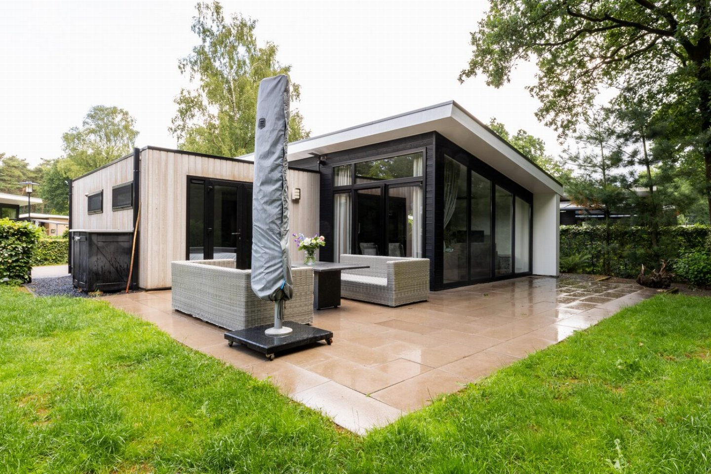 Let op: de tuin indeling, woning inrichting en kleurstelling van de Bos Lodge 75 6 personen die u kiest, kan afwijken van de getoonde afbeeldingen op de website.