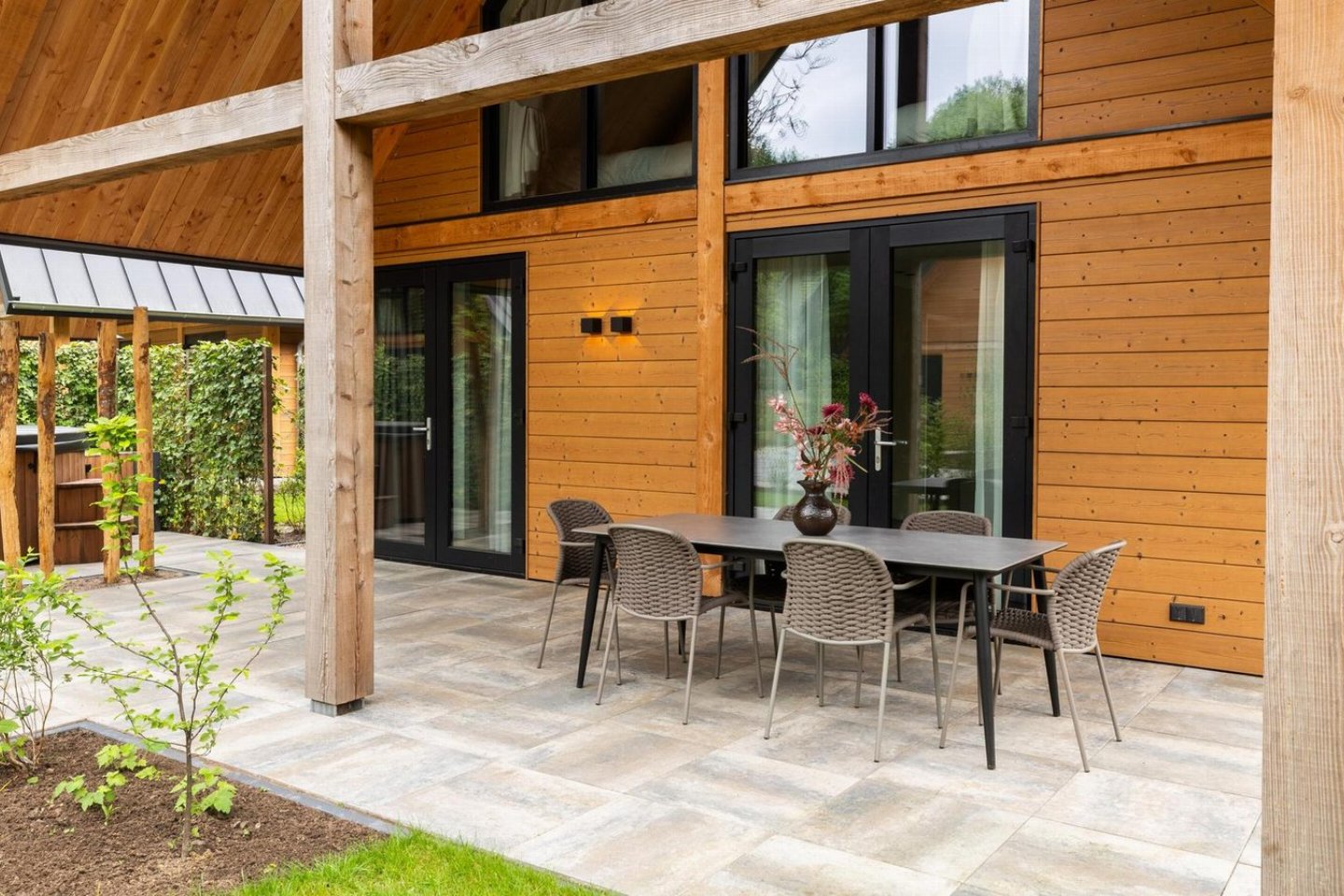 Buiten is het op-en-top genieten bij de Bos Villa's. Door de openslaande deuren in de woonkamer stapt u zo naar buiten op de overdekte veranda met terras. De aangelegde tuin maakt het buitenleven compleet.
