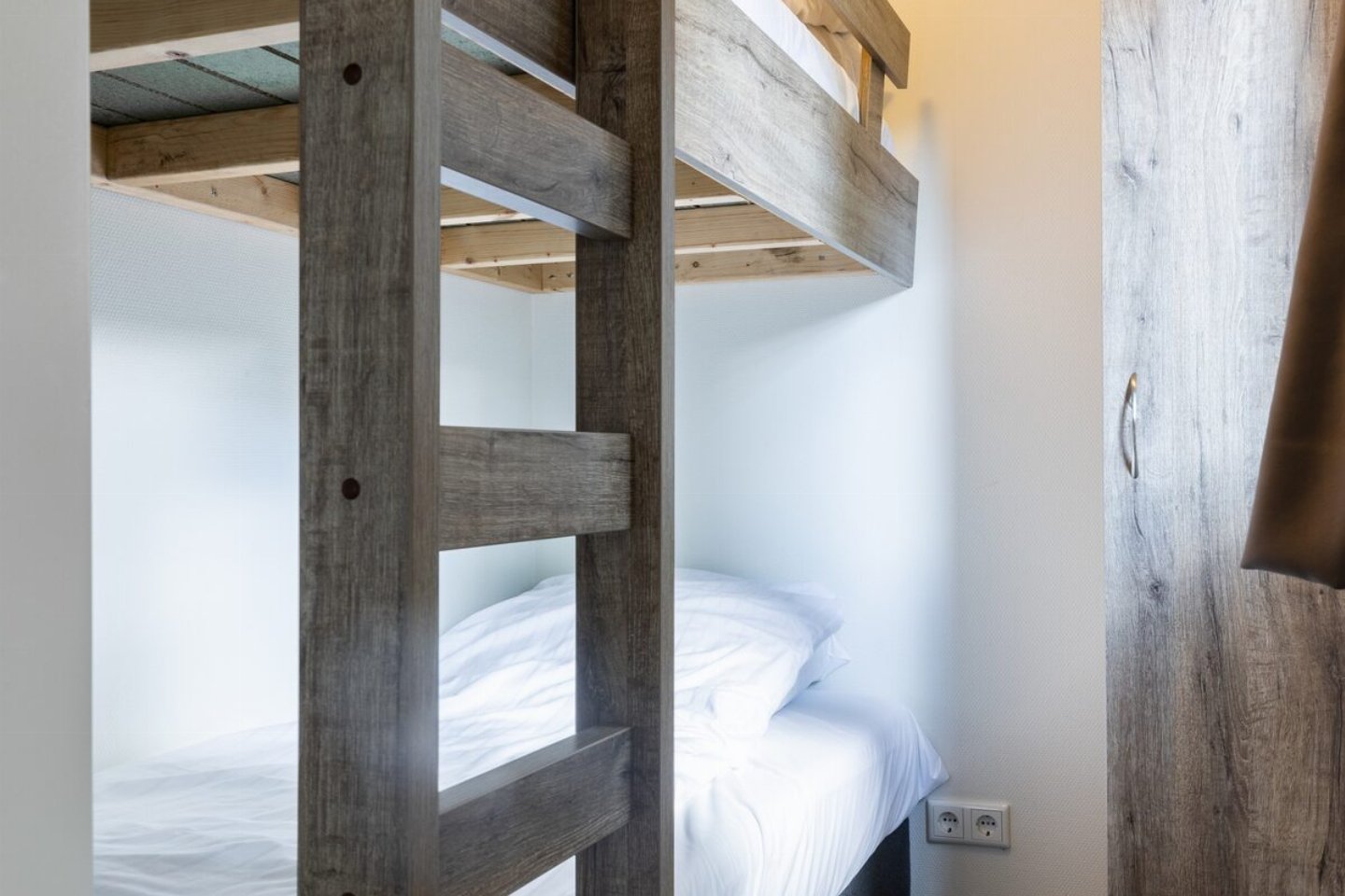 (1 kamer met 2 bedden tegen elkaar aan, 1 kamer met 2 bedden uit elkaar en 1 kamer met een stapelbed)