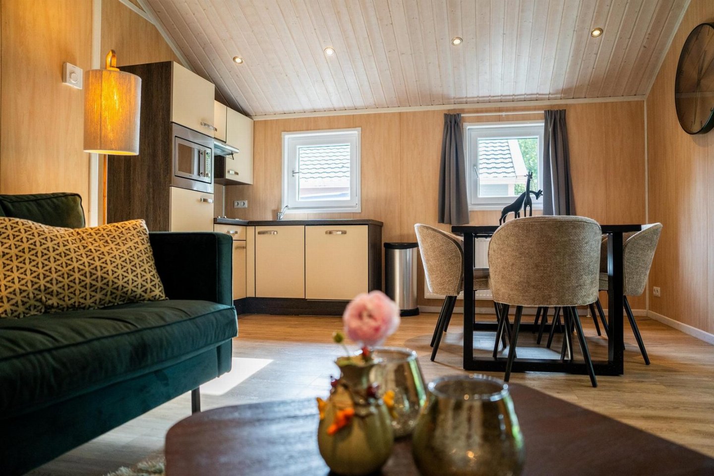 Sfeervol overnachten in een unieke accommodatie. Maak kennis met onze Lodge Deluxe voor 6 personen!  Door de veranda en de openslaande deuren met een eigen terras komt de natuur nog dichterbij. Comfortabel en stijlvol genieten samen met de familie of vrienden, geschikt voor 6 personen.