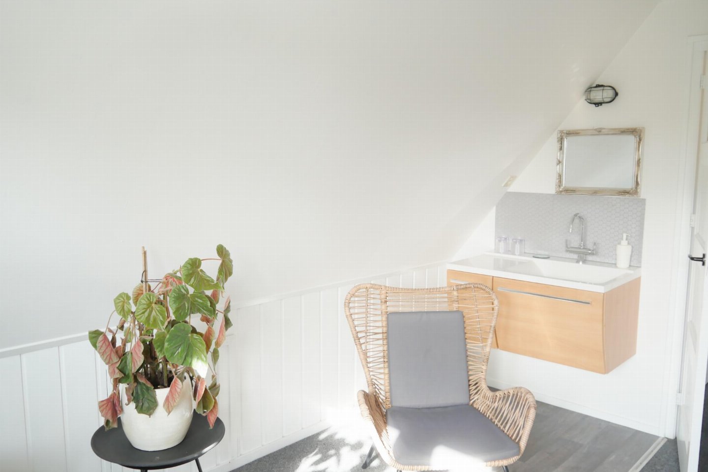 Deze sfeervolle vakantiewoning voor vier personen biedt een combinatie van modern comfort en huiselijke charme. Beneden bevinden zich twee badkamers, waarvan één aansluit op de nieuwe slaapkamer met toegang tot de tuin. De bovenverdieping heeft een knusse, iets oudere slaapkamer en een eigen toilet. Honden zijn welkom, zodat het hele gezin kan genieten van een ontspannen verblijf. De persoonlijke inrichting zorgt voor een warme en gastvrije sfeer.