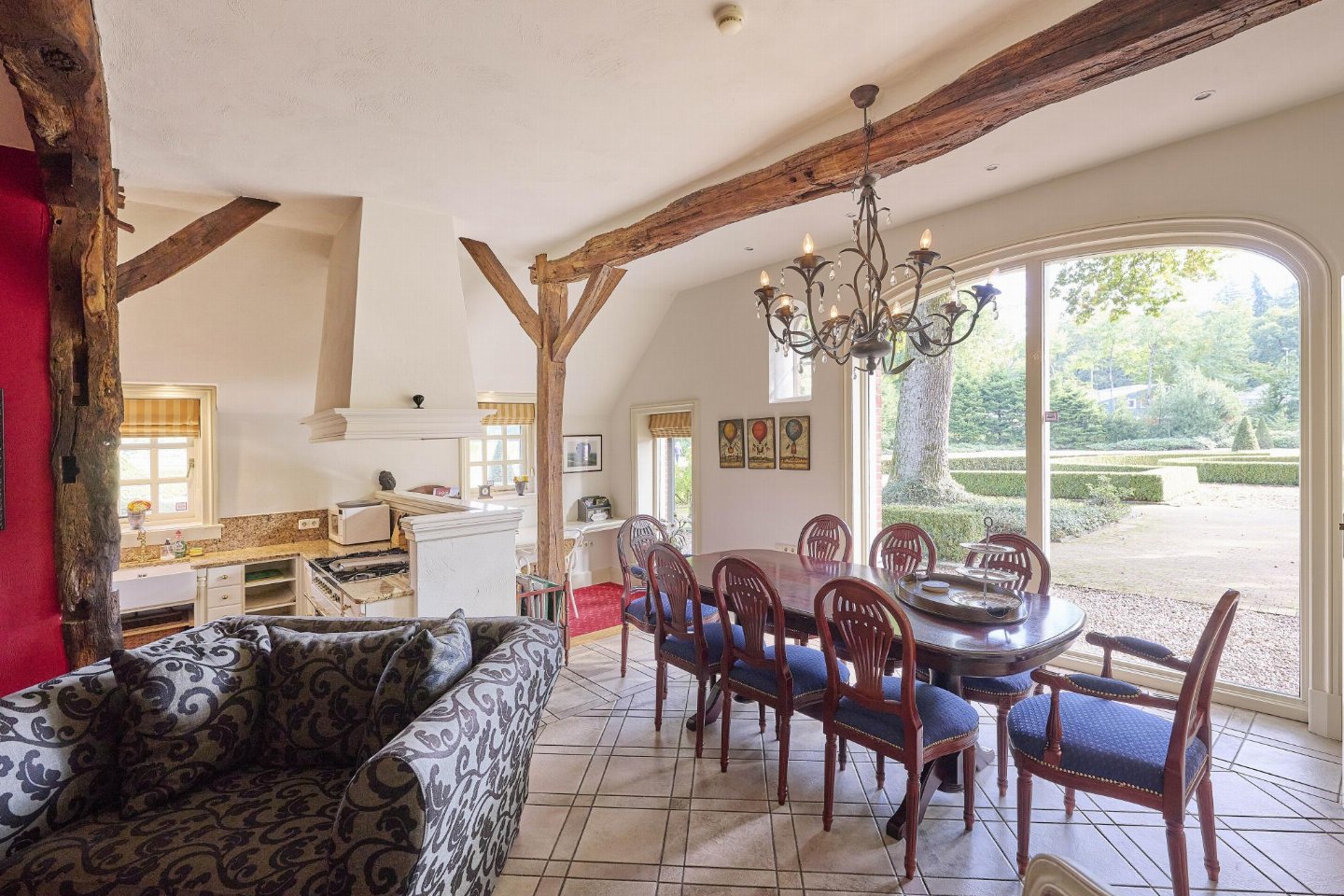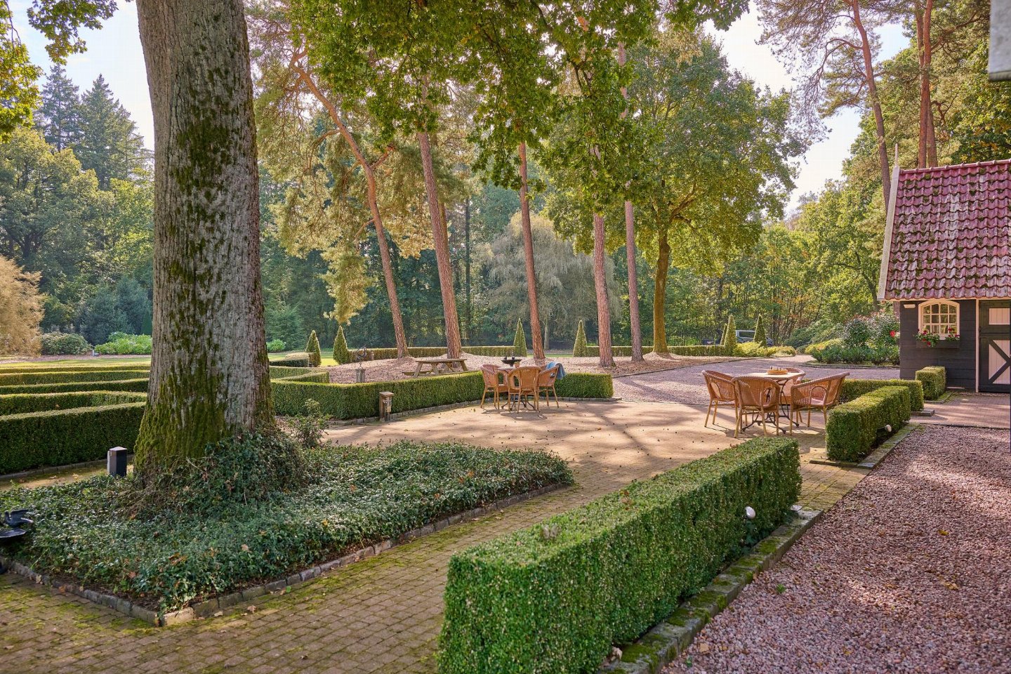 Het bijgebouw is voorzien van een overdekt terras met open haard en terrasverwarmers, perfect voor lange avonden met familie of vrienden.