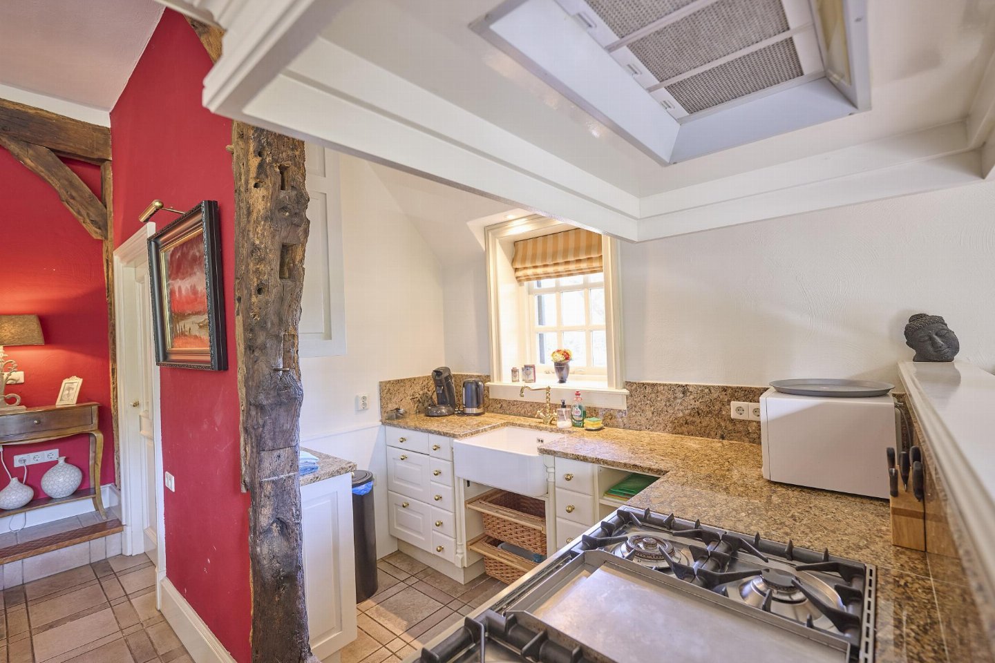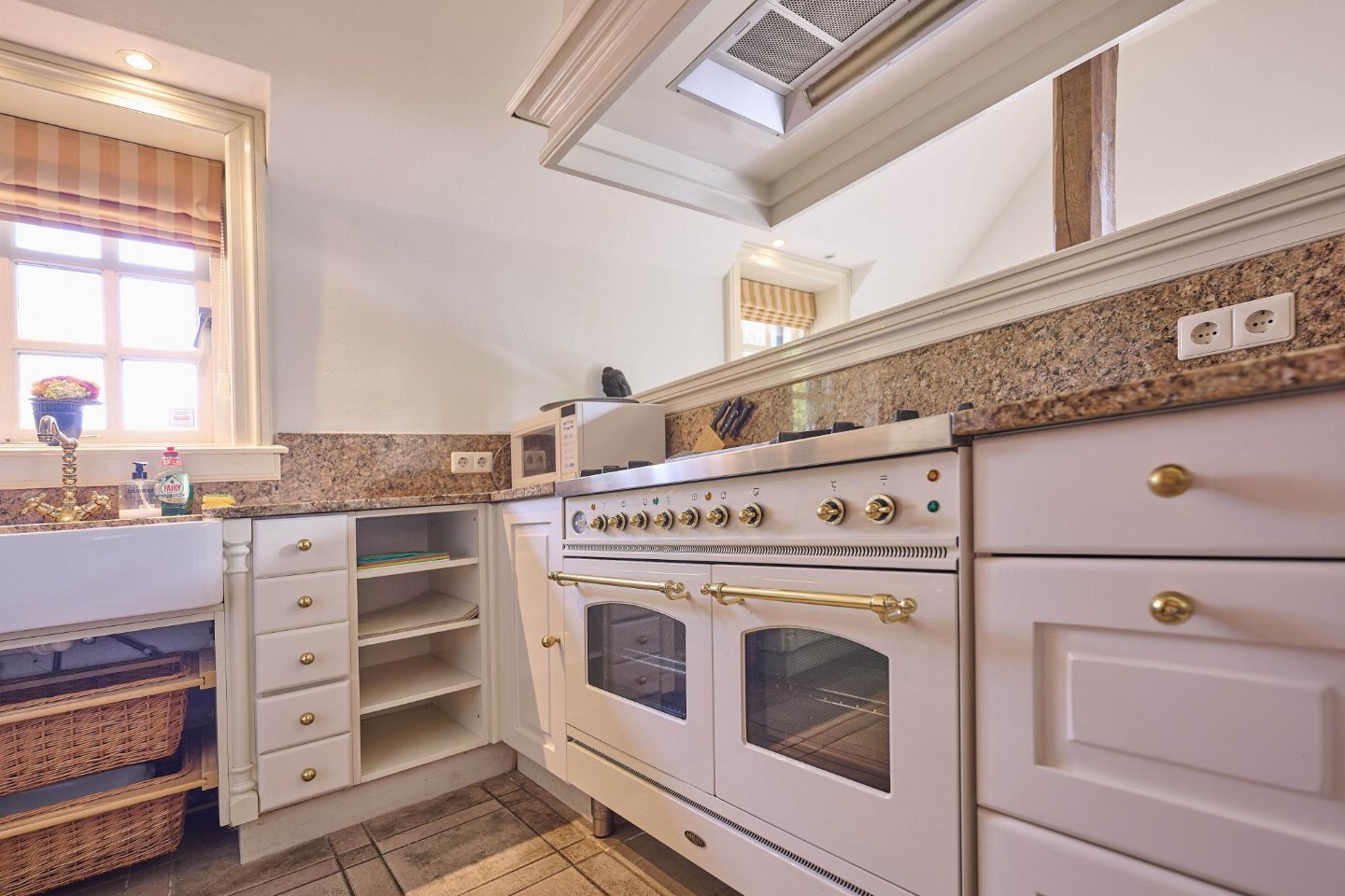 - Open keuken (kookplaat met 4 gasplaten, waterkoker, afzuigkap, koffiezetapparaat, 2 ovens, magnetron)