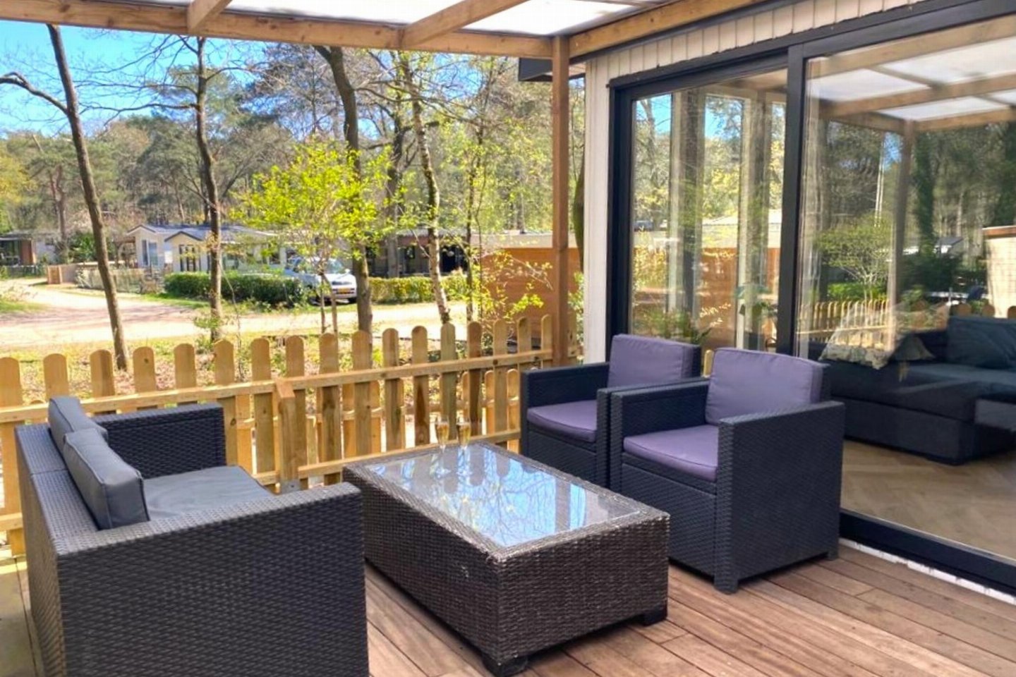 Midden in het bos, op een levendige familiecamping, ligt dit moderne vrijstaande chalet waar comfort en gezelligheid samenkomen. Terwijl jij ontspant op het overdekte terras, geniet je op de camping van volop faciliteiten zoals een buitenzwembad (met peuterbad), speeltuinen en horeca.