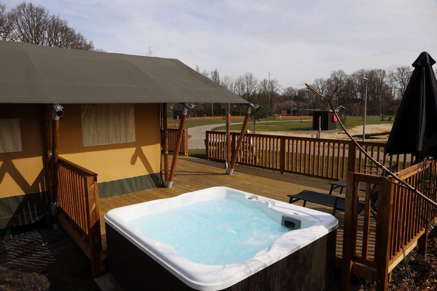 Ultiem ontspannen midden in de natuurErvaar het ultieme glamping-avontuur in de Safaritent met jacuzzi voor 6 personen op Vakantiepark Sallandshoeve, aan de rand van de prachtige Sallandse Heuvelrug. Deze luxe safaritent biedt alles voor een comfortabele vakantie in de natuur.