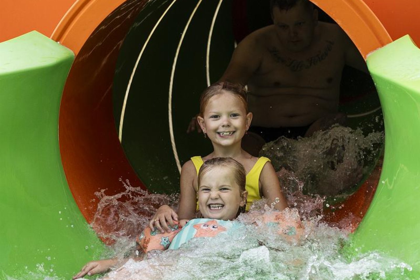 Nederland, Overijssel, RheezeDe Comfort safaritent voor 4 personen biedt een unieke en sfeervolle ervaring met alle gemakken van thuis. Deze tent is uitgerust met een eigen badkamer en een gezellige inrichting, perfect voor een ontspannen vakantie.