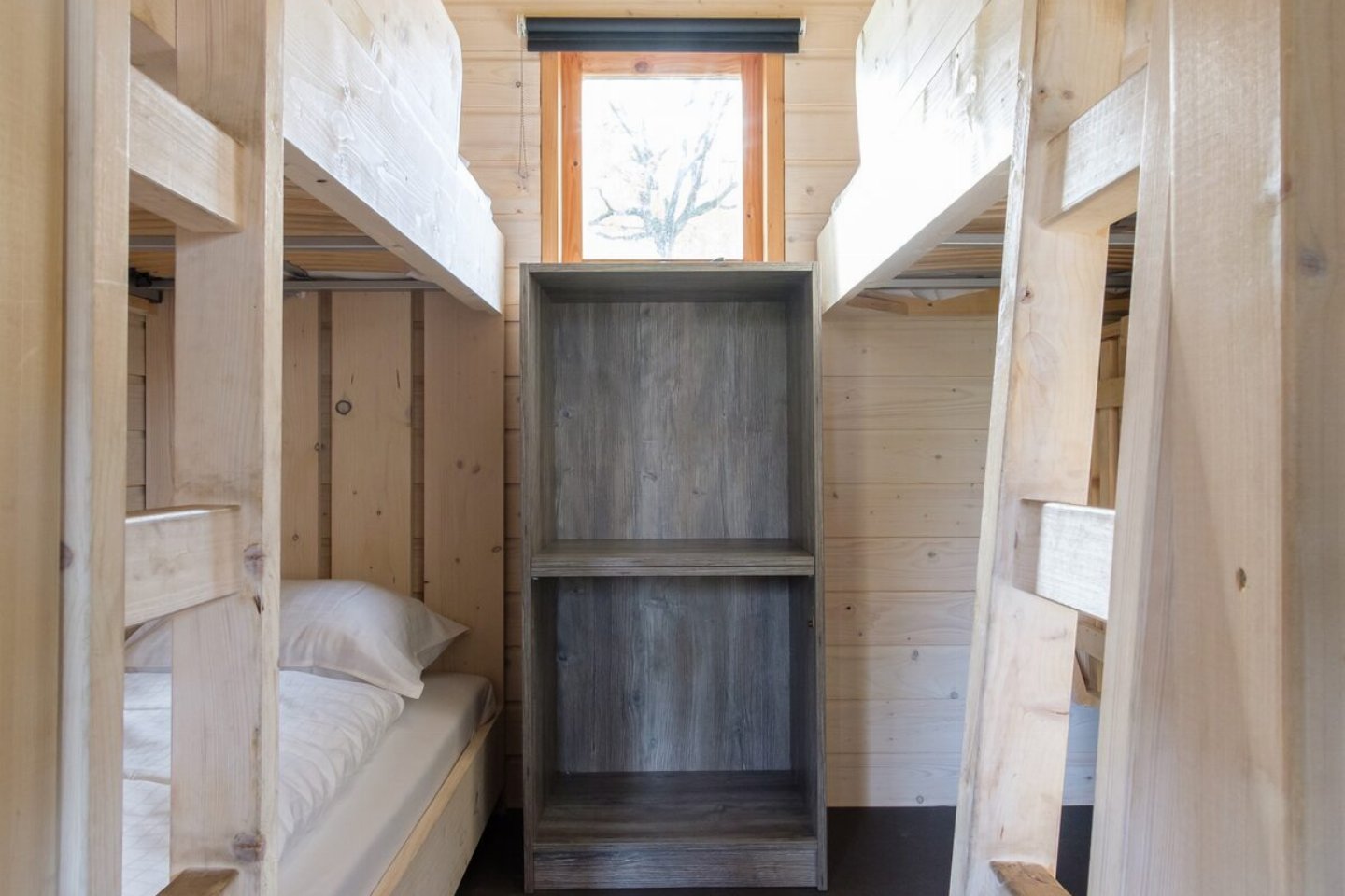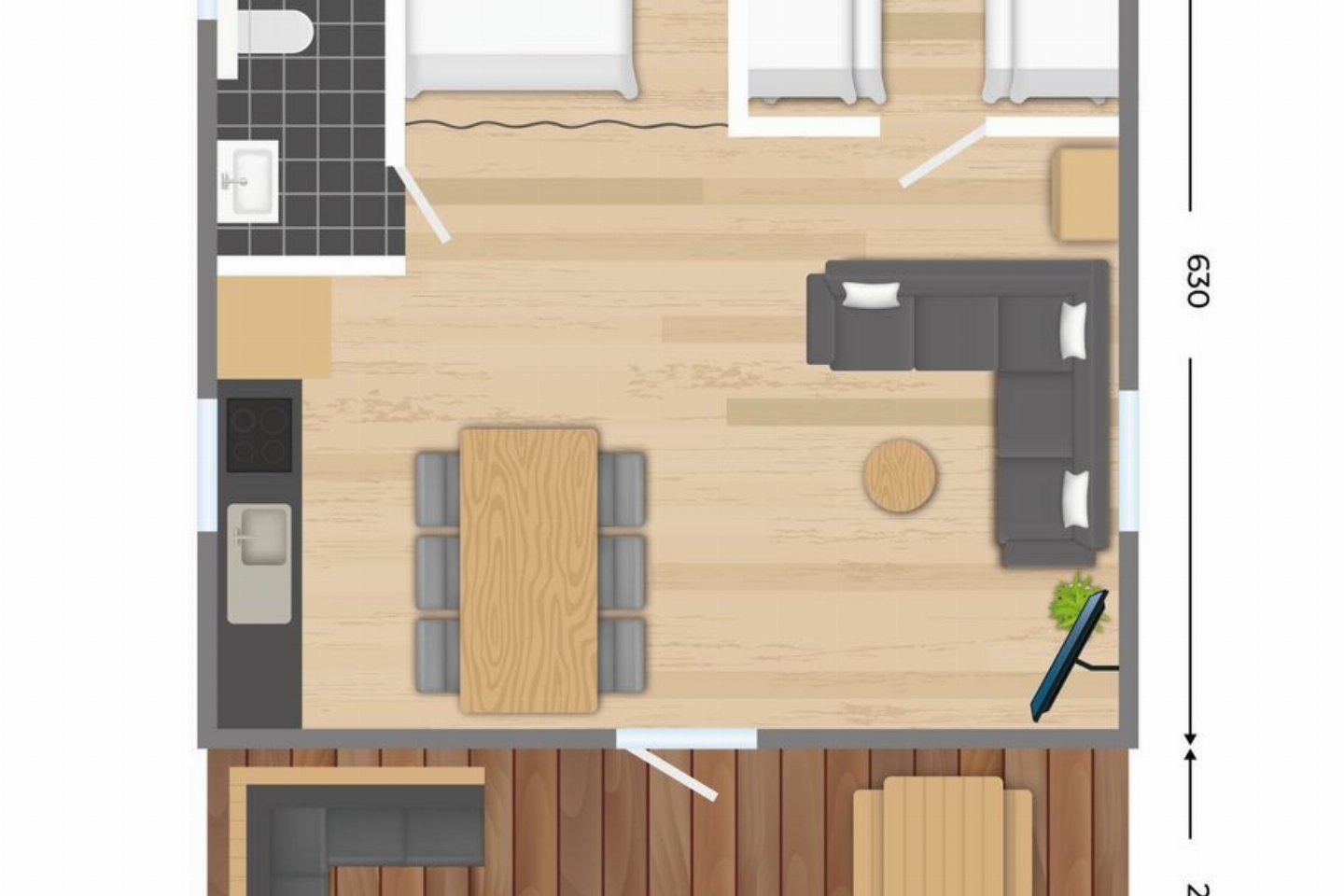 De Rheezerlodge biedt een ruime en gezellige leefruimte waar je samen je favoriete tv-programma's kunt kijken of gezellig aan de keukentafel kunt dineren. De goed uitgeruste keuken heeft alles wat je nodig hebt, inclusief een koelkast met vriesvak en vaatwasser. De lodge heeft twee slaapkamers: de eerste met een comfortabel 2-persoons boxspringbed, af te sluiten met een gordijn voor extra privacy. De tweede slaapkamer is ideaal voor kinderen, met twee stapelbedden waarvan het onderste bed opklapbaar is voor een campingbedje. Het andere bed heeft een verwijderbare lattenbodem, waardoor er ruimte is voor een tweede campingbedje. Bedlinnen is standaard aanwezig voor alle gasten vanaf 2 jaar. De moderne badkamer heeft een douche met losse douchekop, wastafel en toilet. Buiten geniet je van een ruime veranda met een comfortabele loungehoek en een grote picknickbank, perfect voor het hele gezin om buiten te relaxen en te genieten!Â