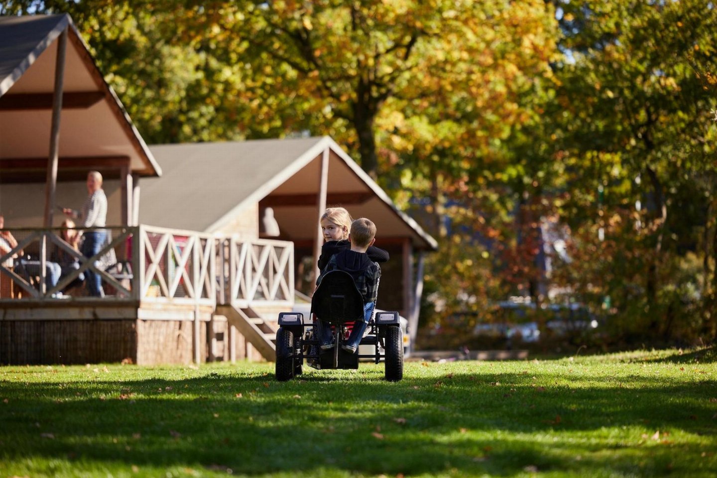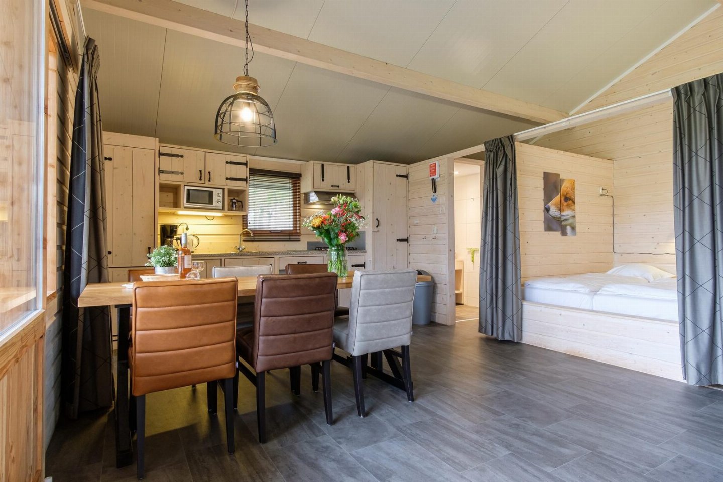 Nederland, Overijssel, RheezeWil je tijdens de vakantie het échte buitenleven ervaren, maar ook genieten van het comfort en gemak van thuis?. Deze prachtige hoge Deluxe variant van de Rheezerlodge is voorzien van fijne gemakken en vind je op de Berk 1, 3, 5