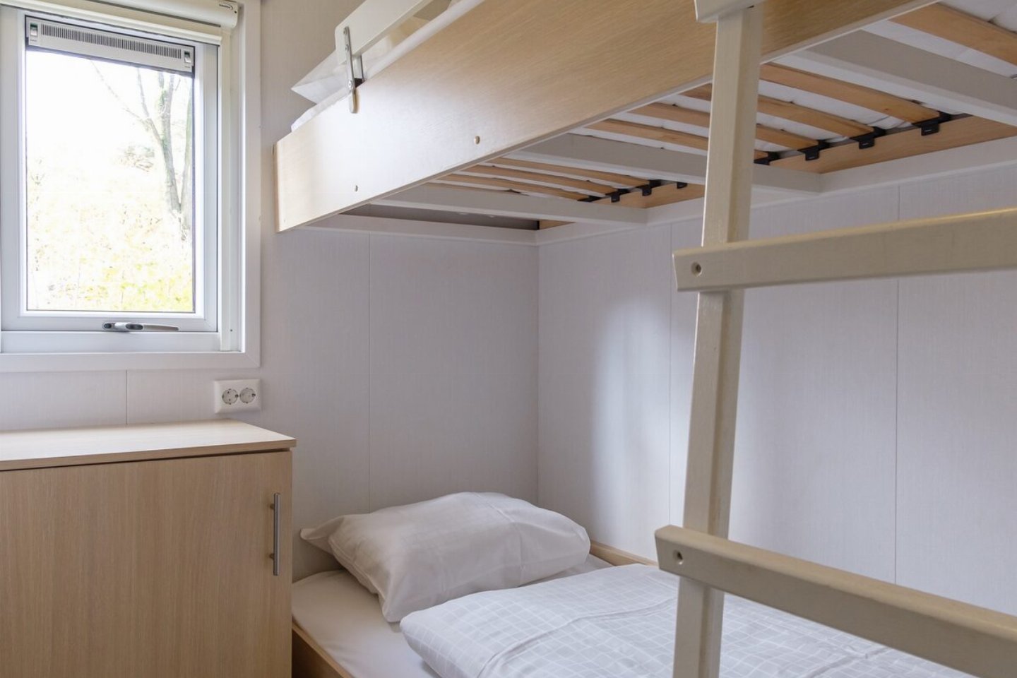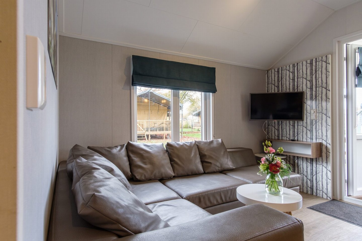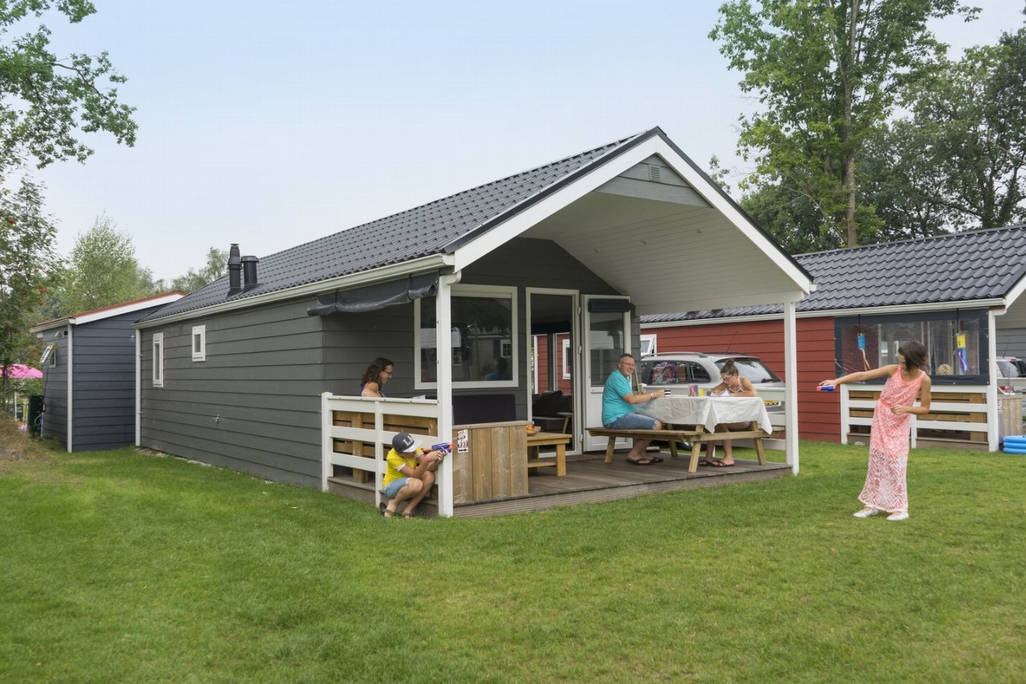 Nederland, Overijssel, RheezeDe Verandachalet valt meteen op wanneer je het veld op komt. Deze accommodaties stralen gezelligheid en het echte glamping gevoel uit. De accommodatie biedt alle comfort van thuis, maar ook heb je echt het gevoel dat je lekker van het buitenleven kan genieten. Bedlinnen is inbegrepen voor alle gasten vanaf 2 jaar.