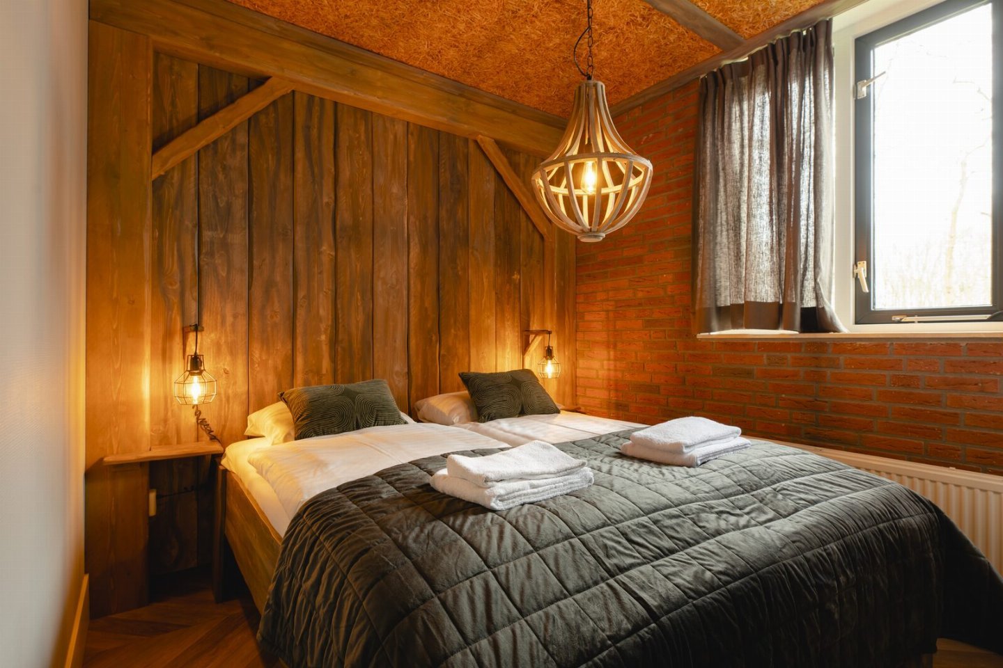 Nederland, Overijssel, ZunaDeze 5-persoons bungalow is perfect voor families met kleine kinderen en babys. Het huisje heeft een ruime tuin met een bubbeltub die altijd 38 graden is en vrij uitzicht op een weiland met dieren. In de winter staan er regelmatig paarden en in de zomer ook schaapjes.
