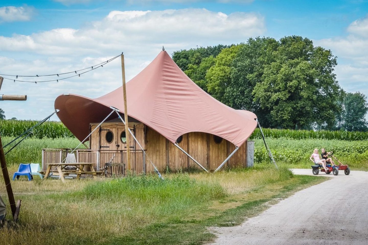 Nederland, Overijssel, ZunaDeze knusse en fijne suite is volledig ingericht voor twee personen. Tijdens je verblijf beleef je de allerfijnste dromen en de leukste vakantiedagen, midden in het groen!. De suite staat op een knus veldje waar je ook onze bijzondere Boutique suites kan vinden. Geniet van de