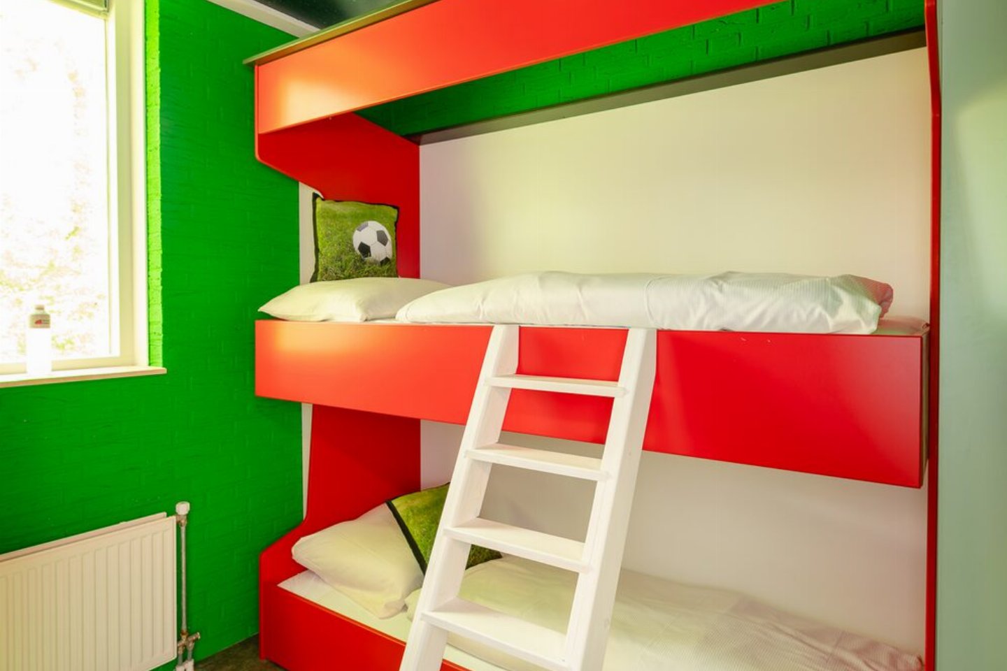 Nederland, Overijssel, ZunaHeb je kinderen welke dol zijn op voetbal?. Maar houdt je niet van voetbal, dan zit je er ook heerlijk bij in de altijd warme bubbeltub!. Zo is er een royaal gethematiseerde woonkamer/spelershome, een luxe ingerichte keuken en een badkamer en nog veel meer!. De keuken is luxe ingericht met vaatwasser en magnetron.