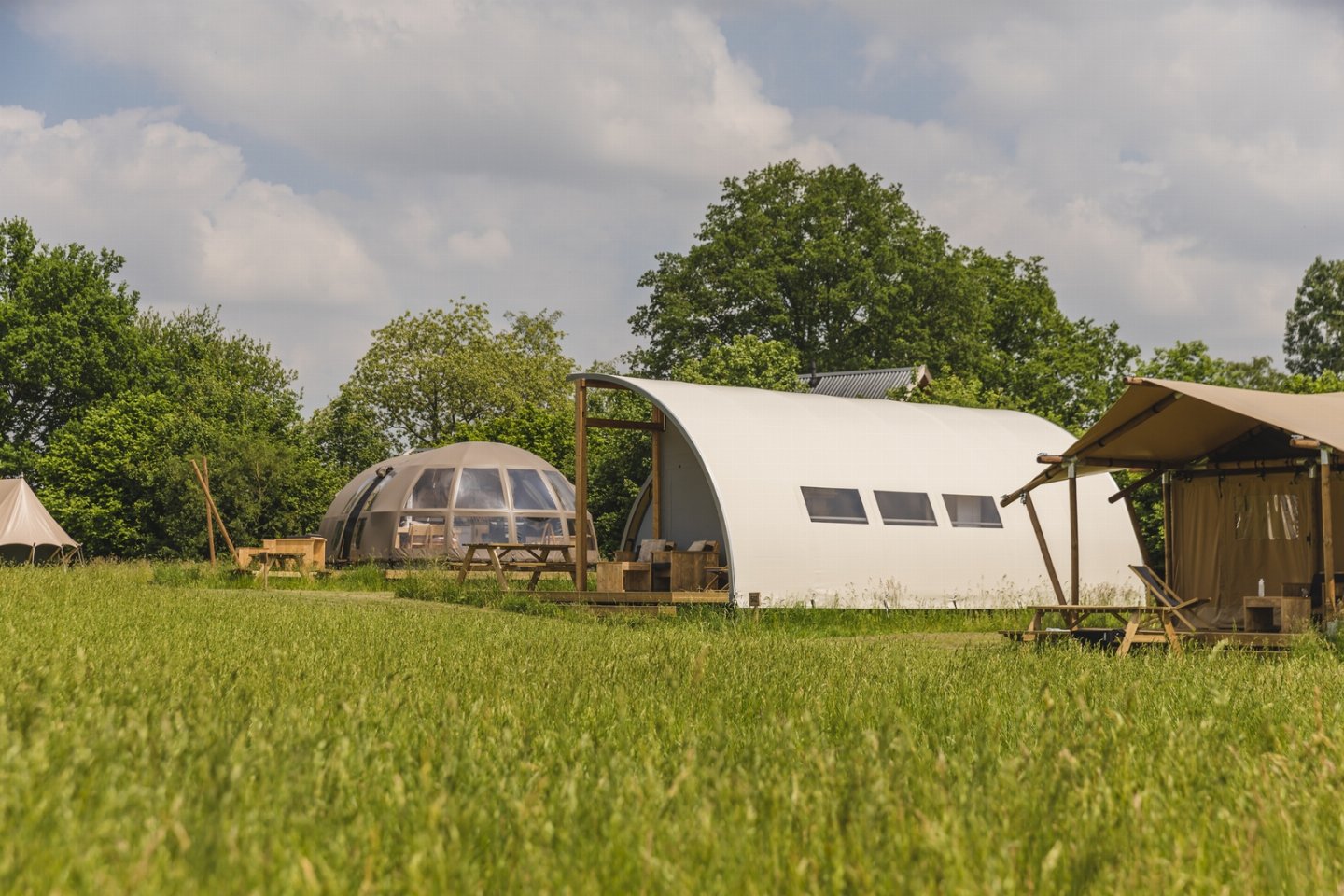 De Riverdome is een luxe tent met het comfort van een huisje. Je beschikt over je eigen keukentje met koelkast, badkamer en terras. Als je verblijf in de Riverdome leef je lekker buiten, maar kan je je terugtrekken in het gezellige Dome wanneer het gaat regenen of wanneer het kouder wordt. De gezellige zithoek beschikt over comfortabele stoelen, er is een gezellige tafel om samen aan te eten en er staan heerlijke bedden klaar. Aan de binnenkant zitten gordijnen, die je volledige privacy geven. De Riverdomes zijn geschikt voor 4 personen en er is ruimte om een kinderbedje te plaatsen. Er is een 2-persoons bed en 2 1-persoonsbedden (deze laatste zijn geschikt tot een leeftijd van ca. 12 jaren).