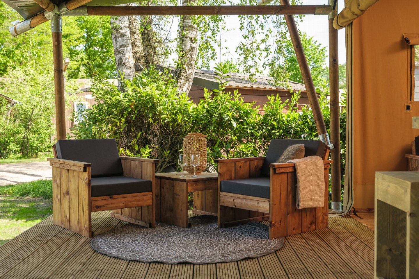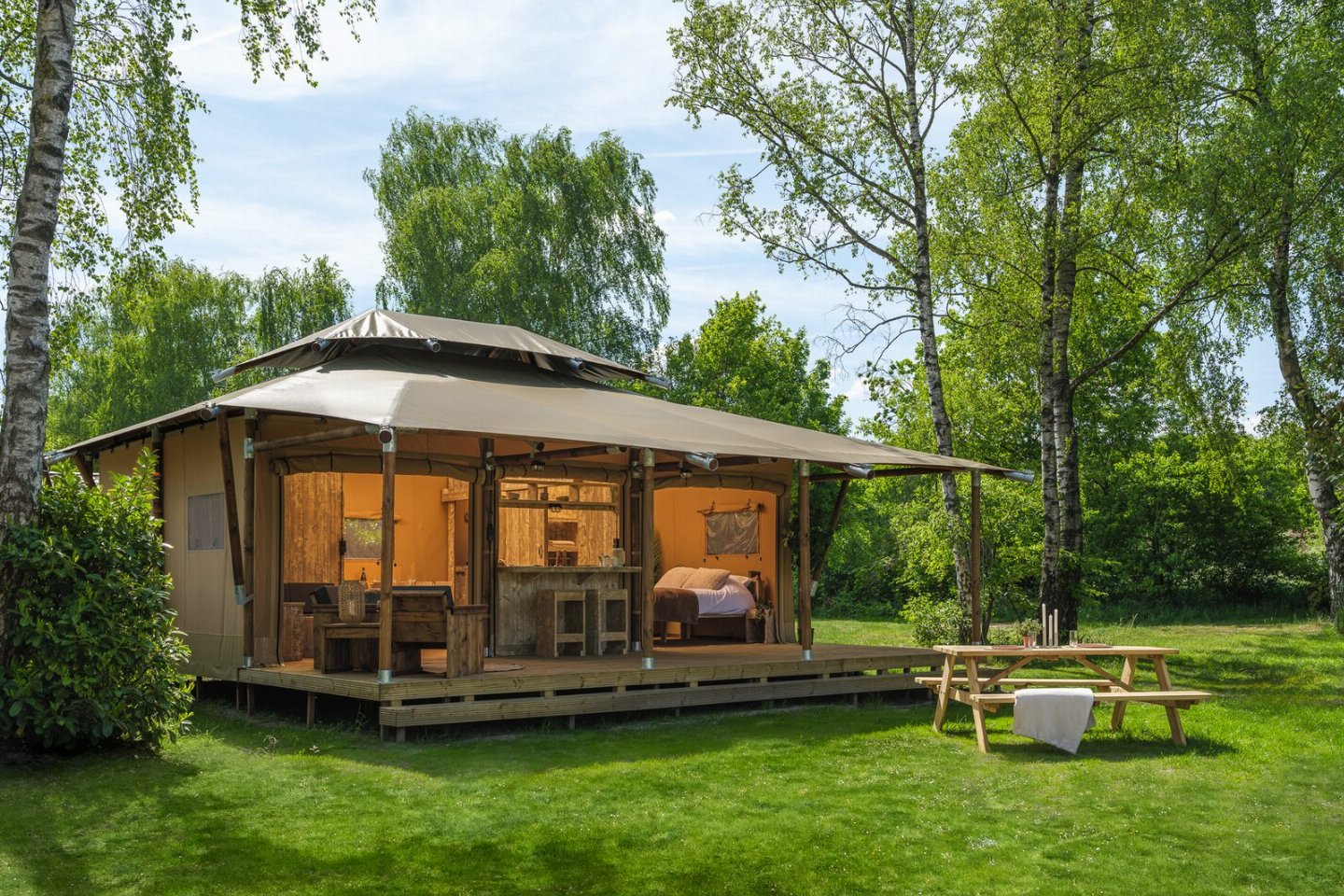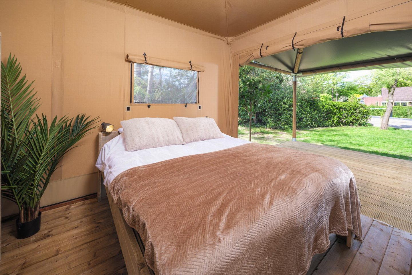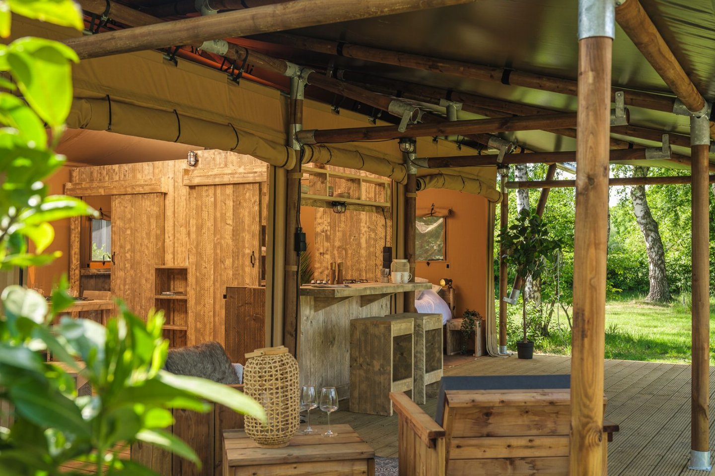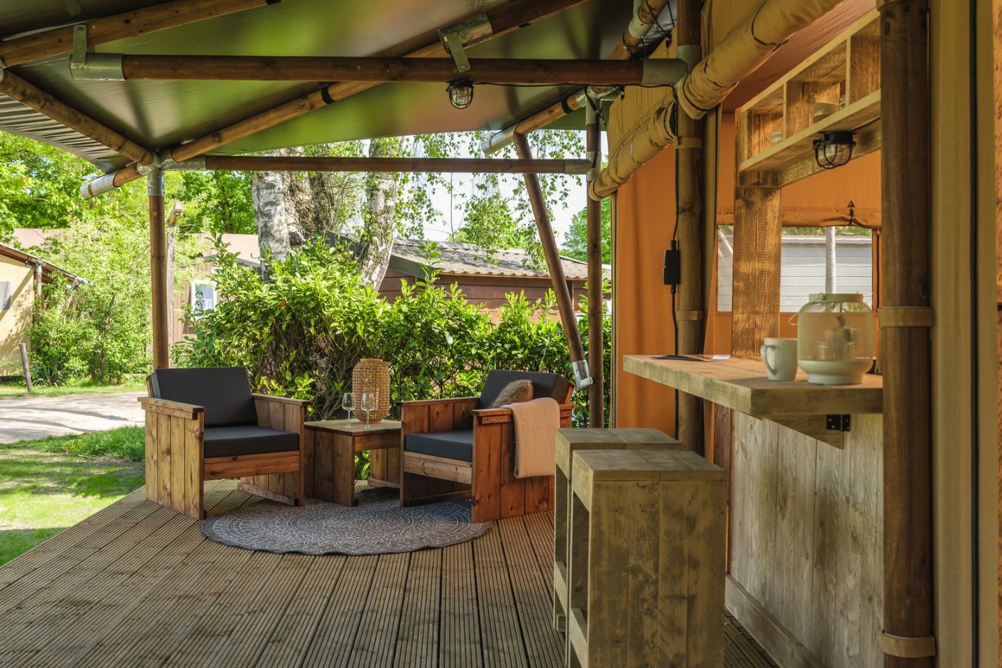 Nederland, Overijssel, ZunaOp ons park hebben we een sfeervolle safaritent voor je klaarstaan. Deze compleet ingerichte tent heeft een extra ruime overkapping aan de voorkant, zodat je optimaal kunt genieten van het buitenleven. Je vindt onze safaritenten op meerdere plekken in het park. Wil je zelf je favoriete plekje uitkiezen?.