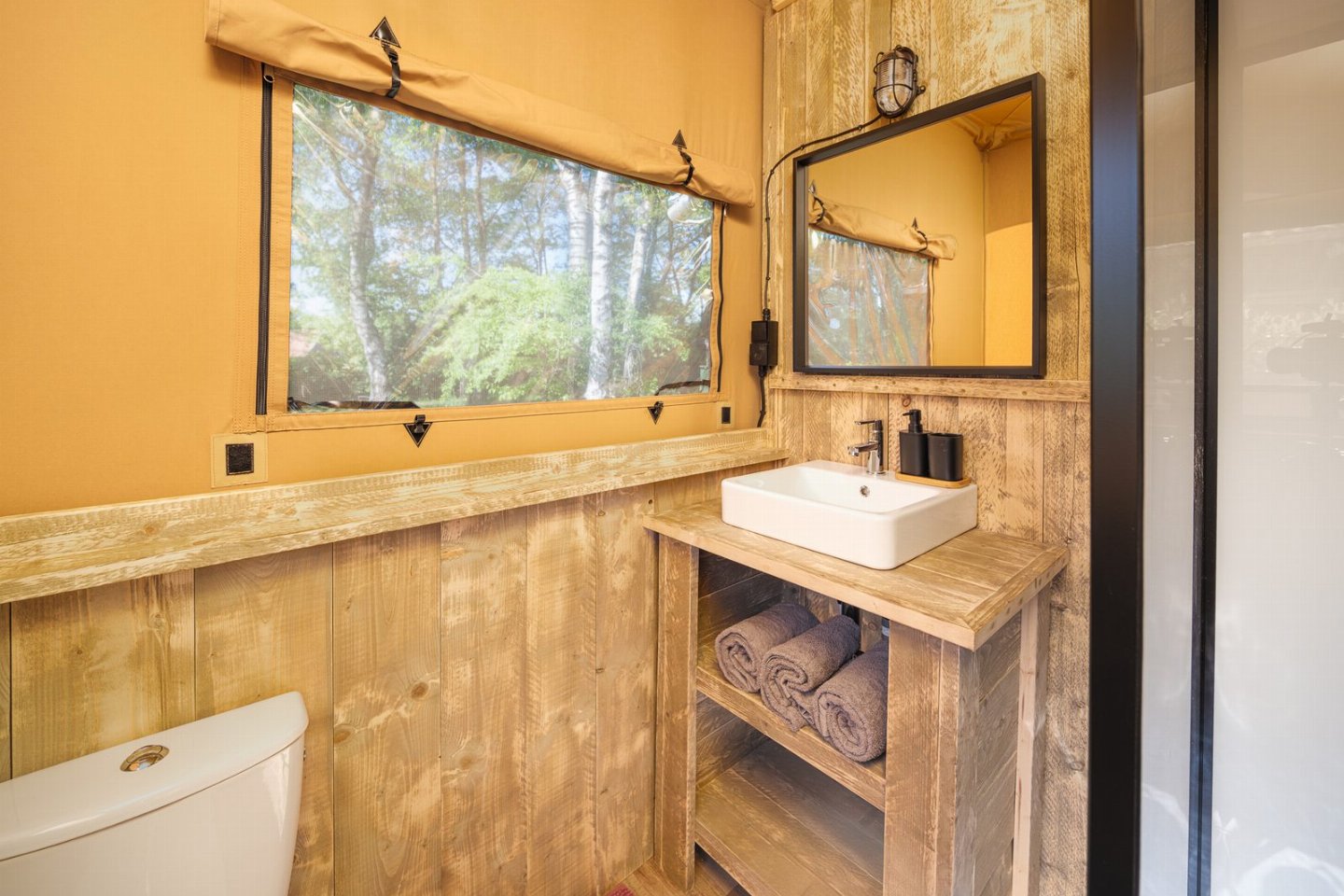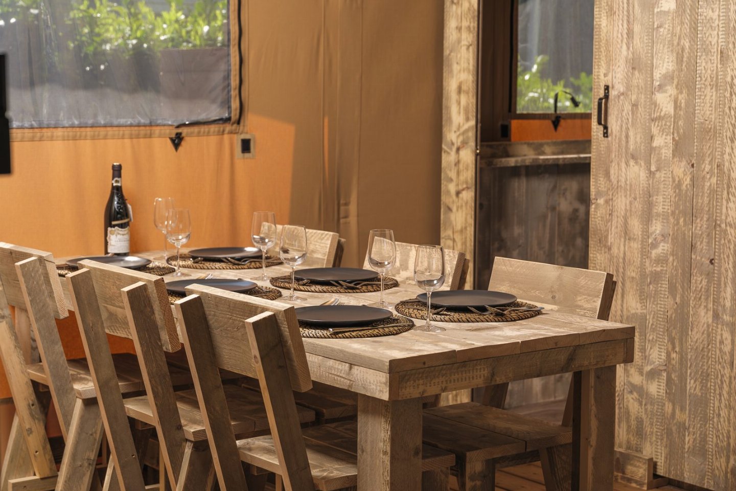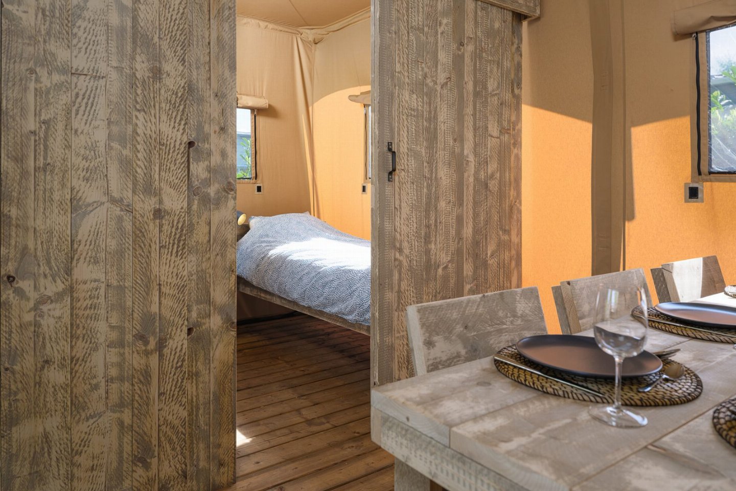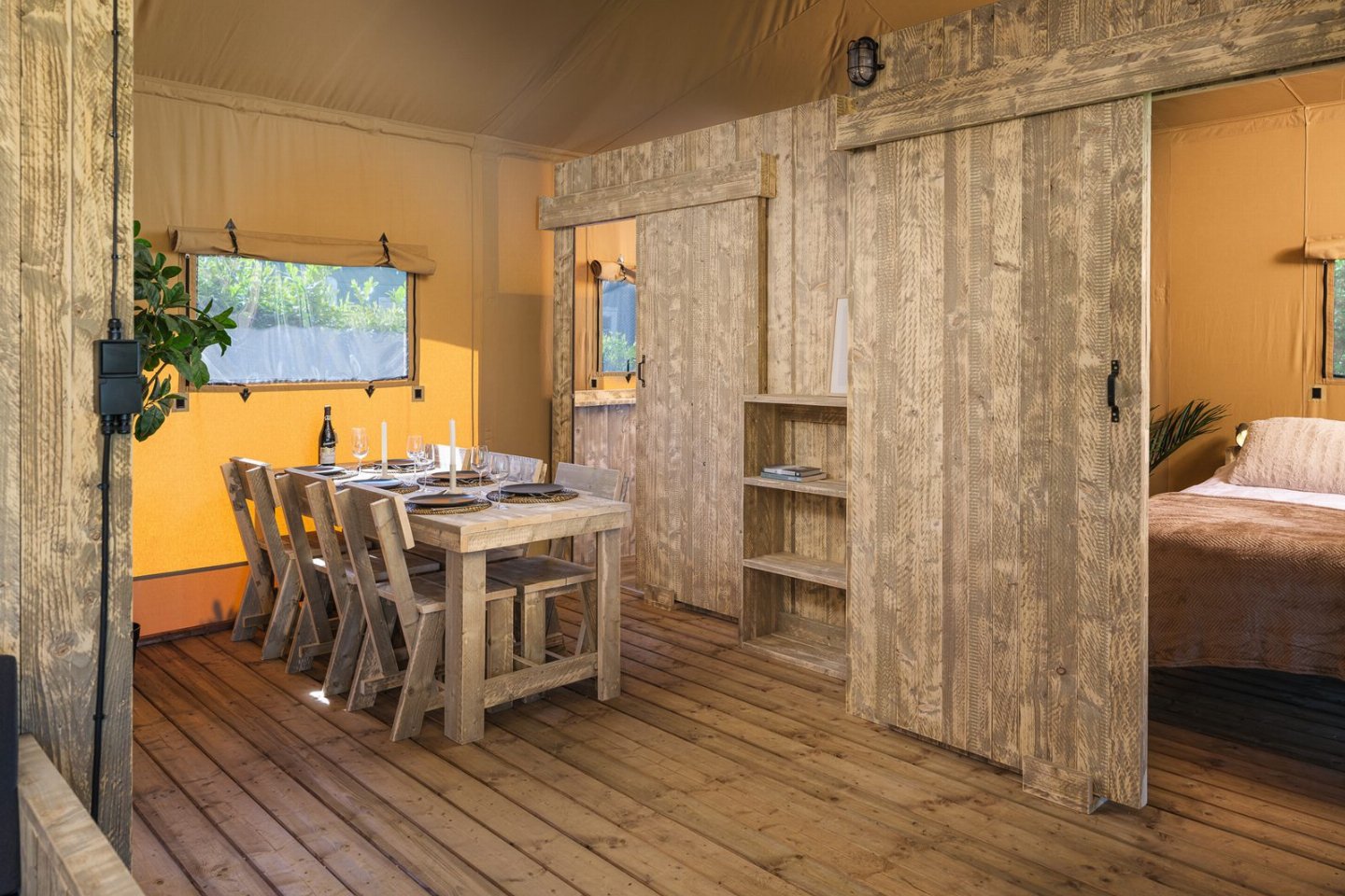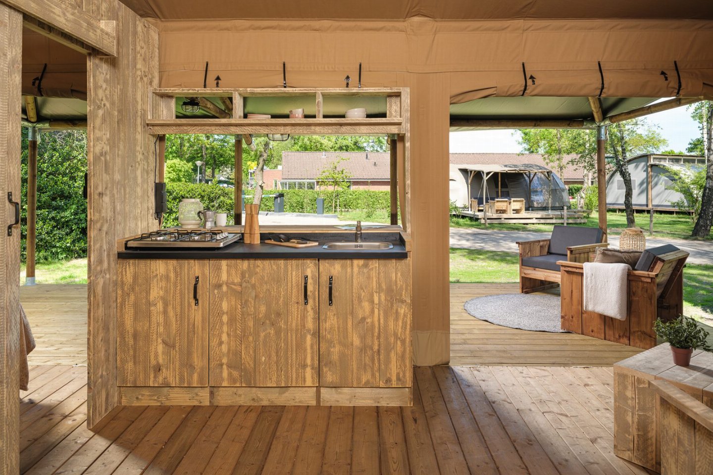 Nederland, Overijssel, ZunaOp ons park hebben we een sfeervolle safaritent voor je klaarstaan. Deze compleet ingerichte tent heeft een extra ruime overkapping aan de voorkant, zodat je optimaal kunt genieten van het buitenleven. Je vindt onze safaritenten op meerdere plekken in het park. Wil je zelf je favoriete plekje uitkiezen?.