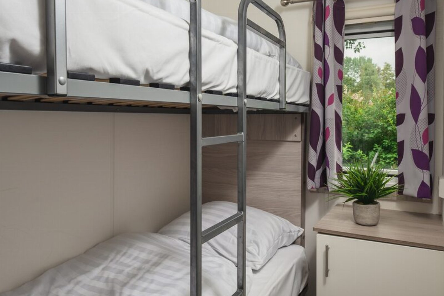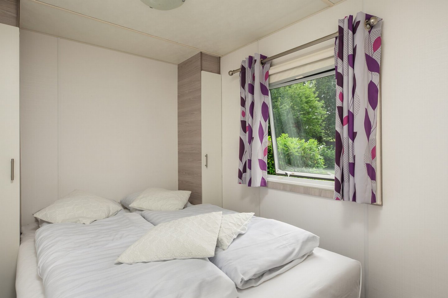 Nederland, Overijssel, ZunaDe 6-persoons simple homes hebben een gezellige woonkamer en keuken met aansluitend een heerlijke veranda om te genieten van het zonnetje. Er is een slaapkamer met een 2-persoonsbed, een slaapkamer met 2 1-persoonsbedden en een slaapkamer met een stapelbed. Het stapelbed is geschikt voor kinderen tot circa 12 jaren oud.