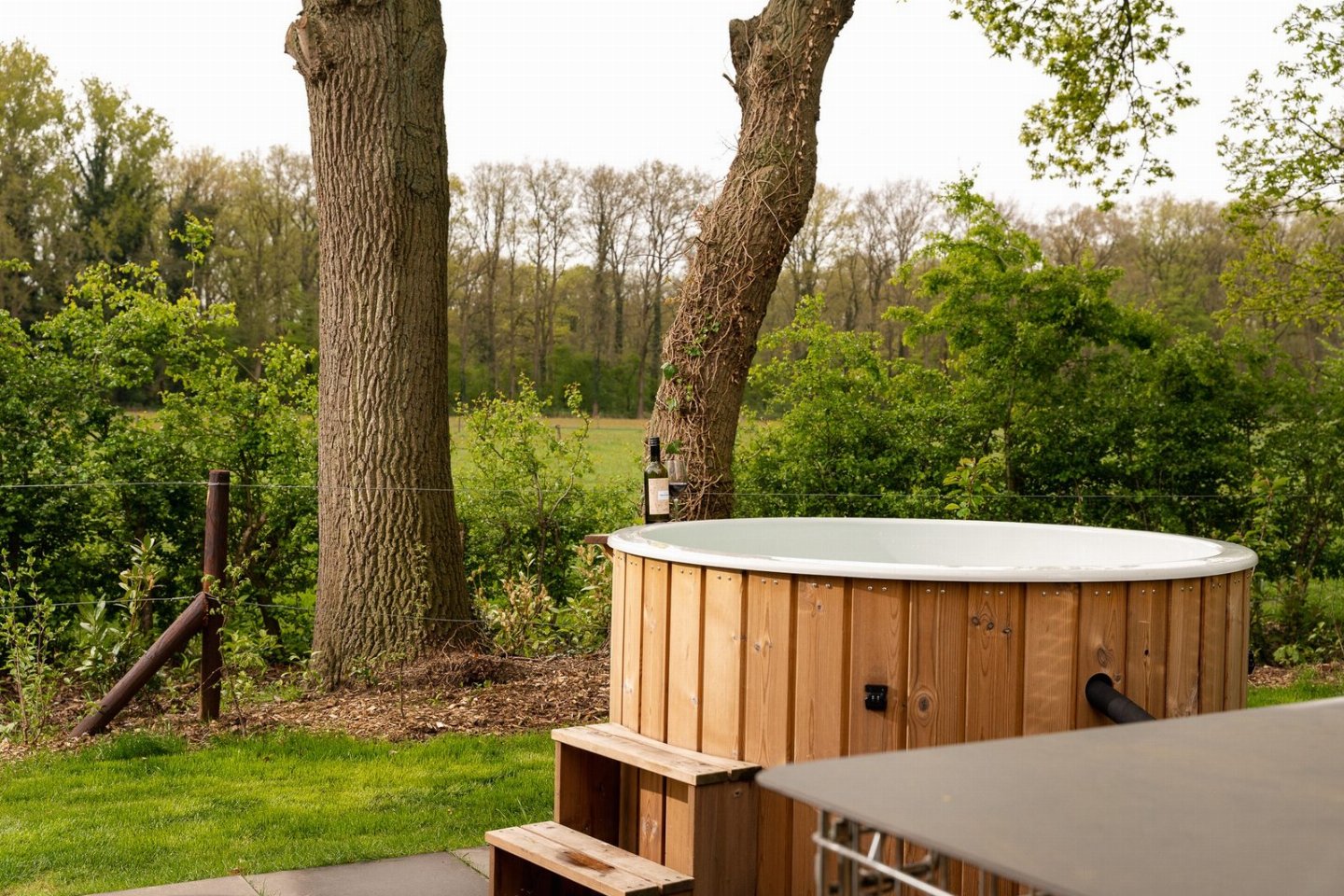 De tuin beschikt over een fijne terrasset en natuurlijk kan je hier je eigen bubbeltub vinden! Hier kun je optimaal genieten van het Twentse vrije leven!