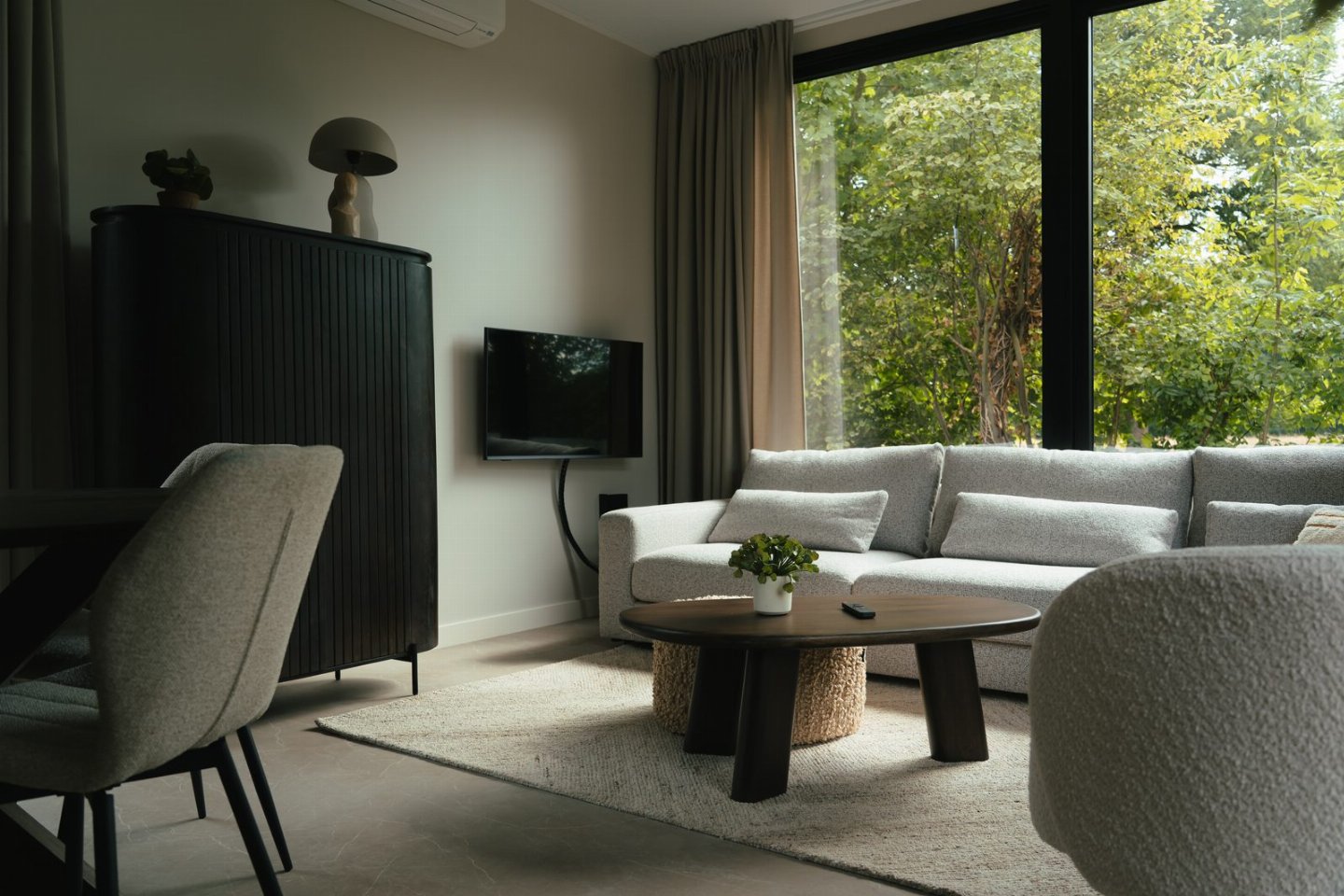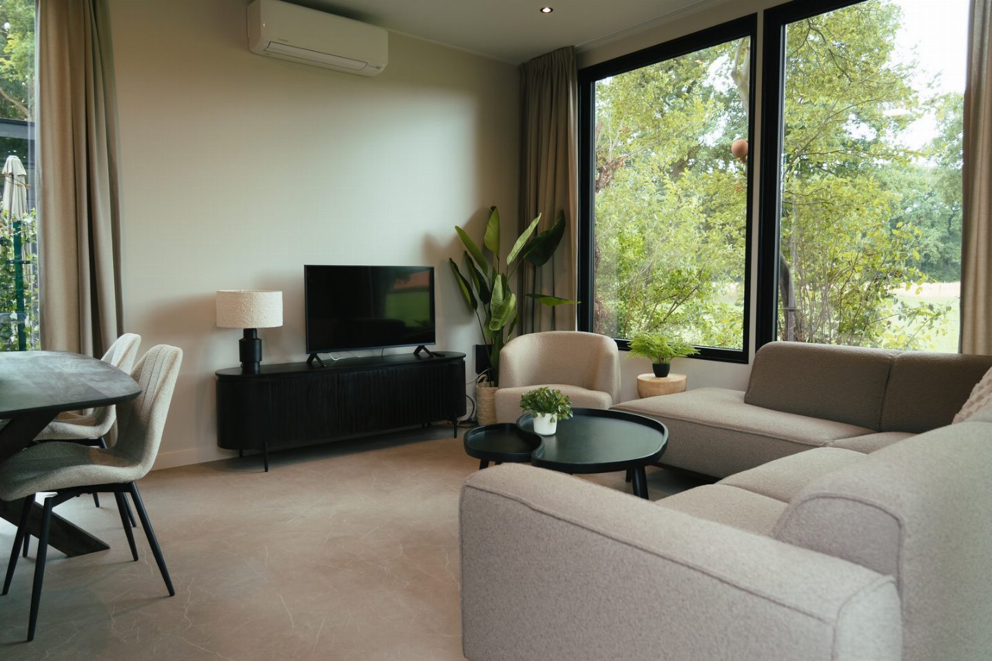 In de woonkamer van de Wellness Boutique is knus ingericht en voorzien van een smart TV. Het is heerlijk loungen op de comfortabele bank, waar je uitkijkt over de weilanden. De Boutique beschikt over een fijne sauna en een comfortabele badkamer met douche inclusief sunshower, toilet en wastafel. Er zijn drie slaapkamers in het huisje, waaronder een tweepersoonskamer met tweepersoonsbed, aangrenzend is de babykamer. Daarnaast is er een slaapkamer met 2 bedden, doorgaans voor 2 kinderen. Dit is een stapelbed. In deze kamer is het ook mogelijk om nog een extra kinderbedje te plaatsen. Dit is ook mogelijk in de babykamer en suite.