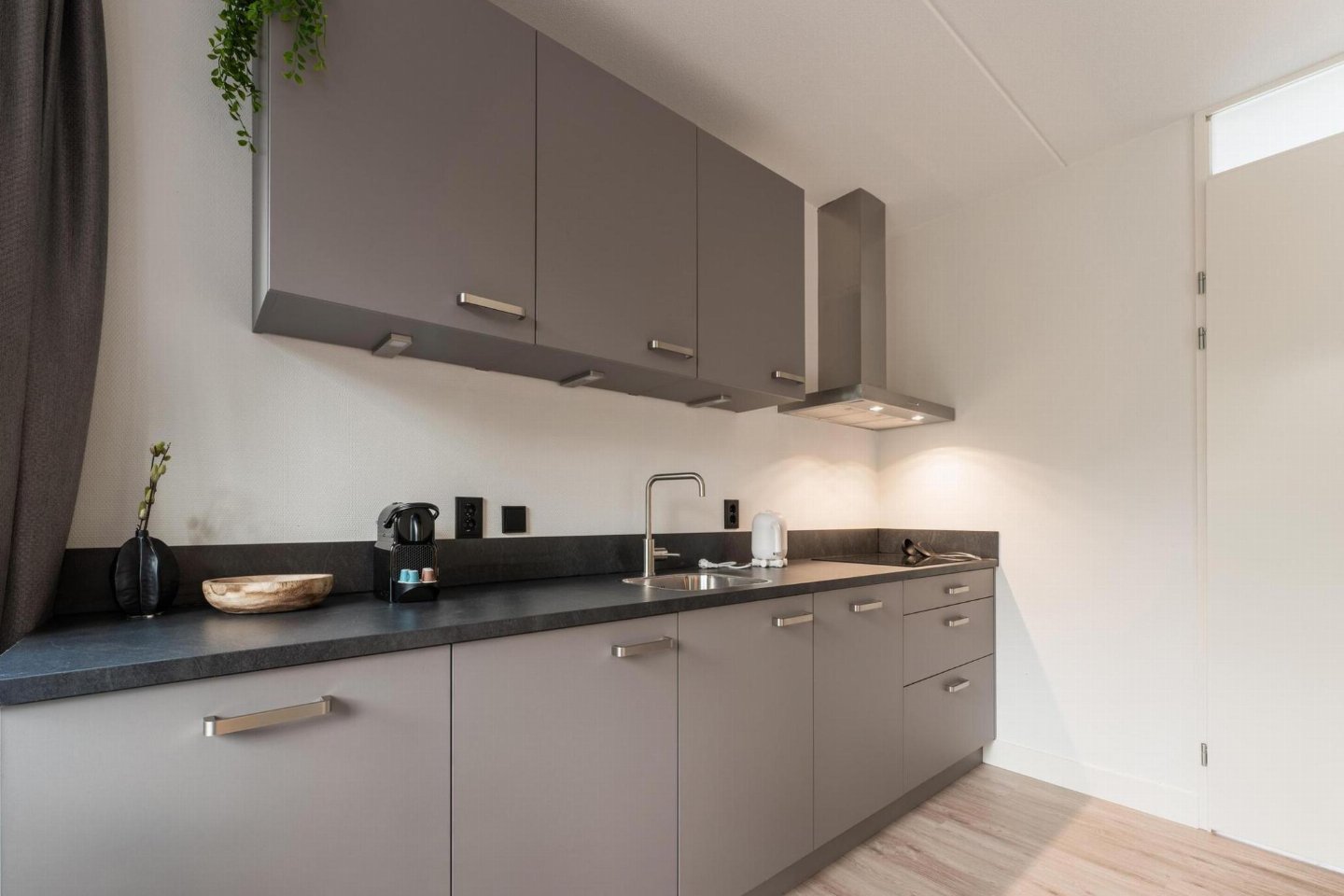 Begane grond: open keuken met kookplaat(inductie), waterkoker, afzuigkap, koffiezetapparaat(cups), combimagnetron, afwasmachine, koel-/vriescombinatie , woon/eetkamer met TV(smart TV), eettafel, zithoek , toilet
